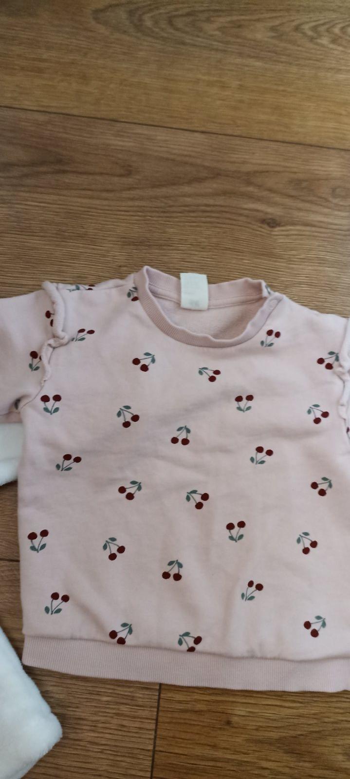 Balík v peknom stave. Len mikina s čerešňami má fliacik, tu pribalim v prípade záujmu. Legíny s čerešňami, horčicove a ružové sú H&M, tiež rifle, príjemné, elastické, H&M.Tunika jednofarebná je Next. Tričká s čerešňami a ružové s bodkami H&M. Legíny s jahodami sú Lindex. Ostatné veci sú C&A F&F, Dopodopo, Lupilu a iné.