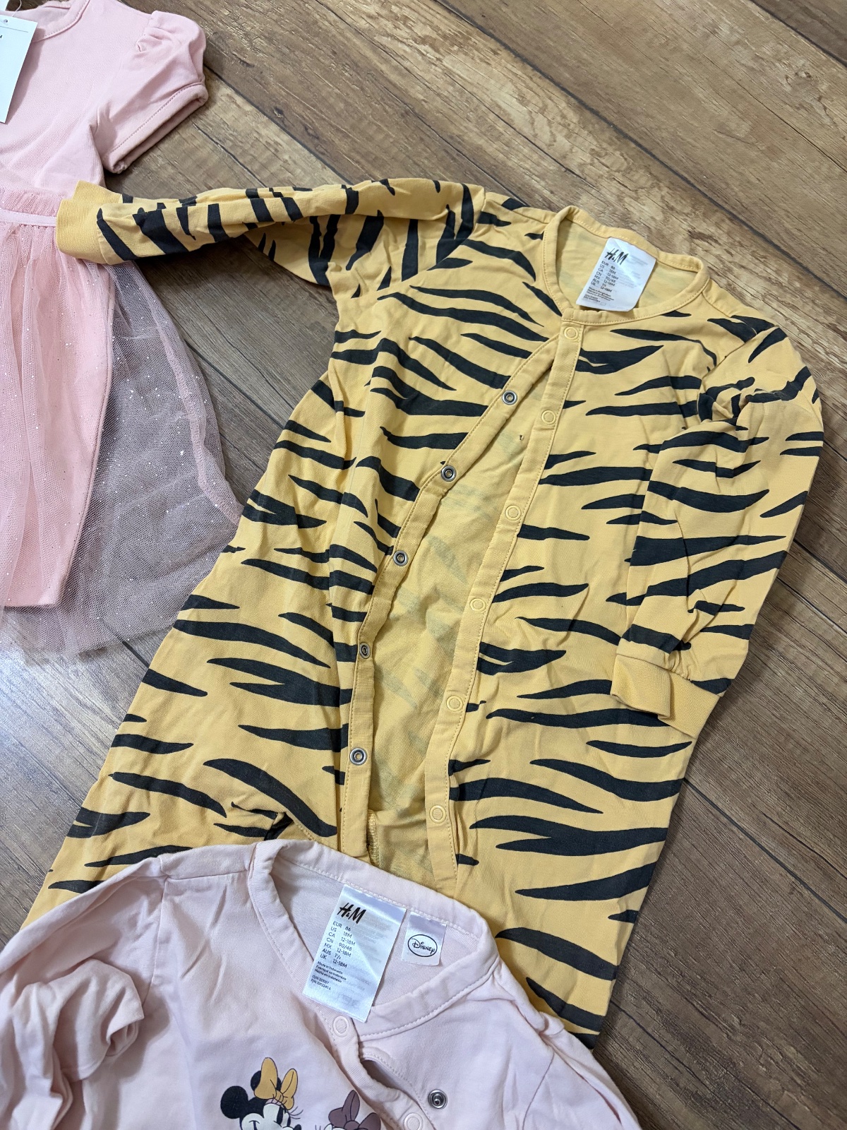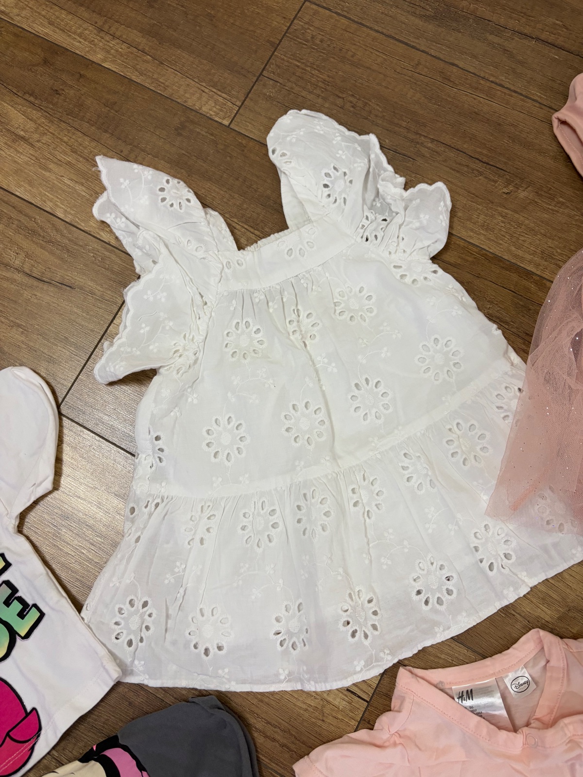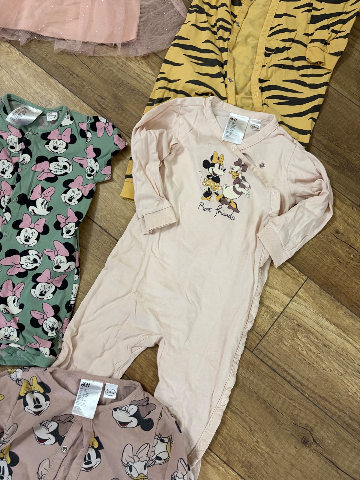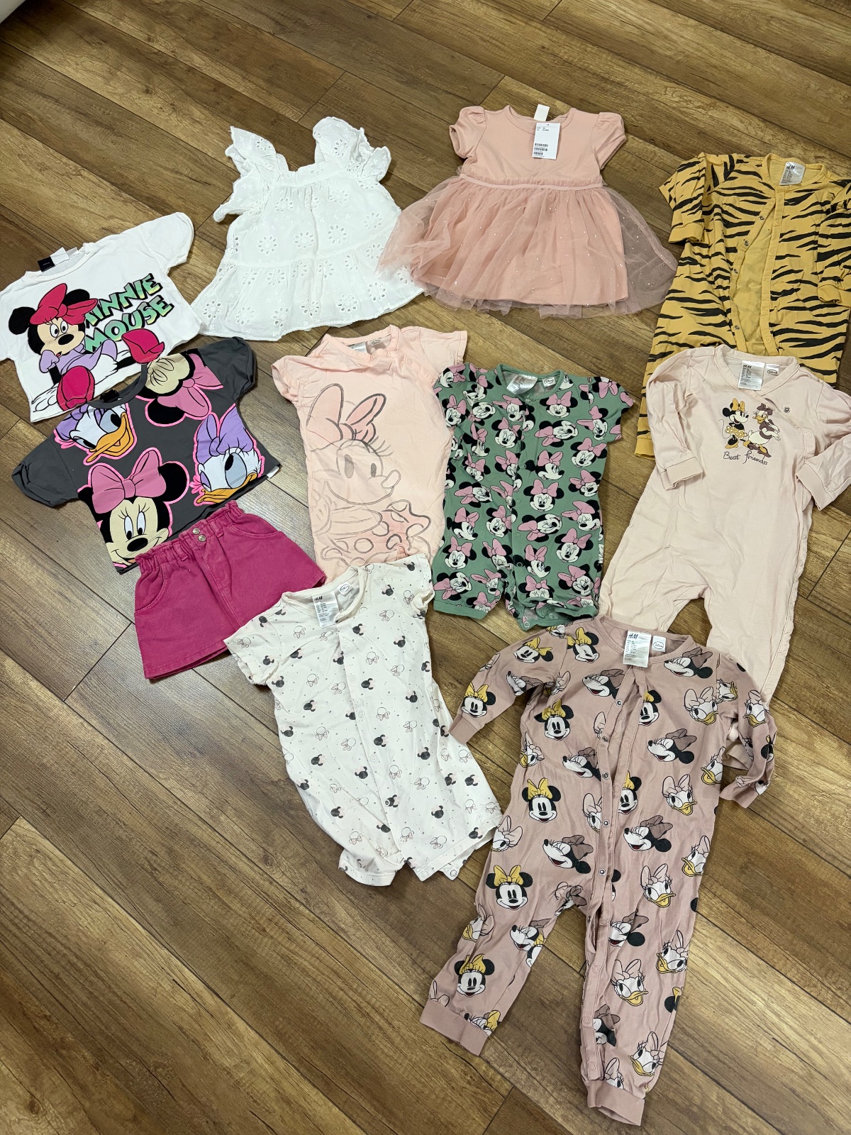 Ponúkam na predaj veľký balík na leto pre dievčatko velkost 86…. Všetko je H&m a zara …. Malo nosene bez poškodenia ( akurát žlté pyzamko má na chrbte malu dierku -vid foto… pc omnoho vyššia … predavam spolu 40 e…. Ruzove šaty a Riflova sukňa a biele zara šaty úplne nové nenosené ….