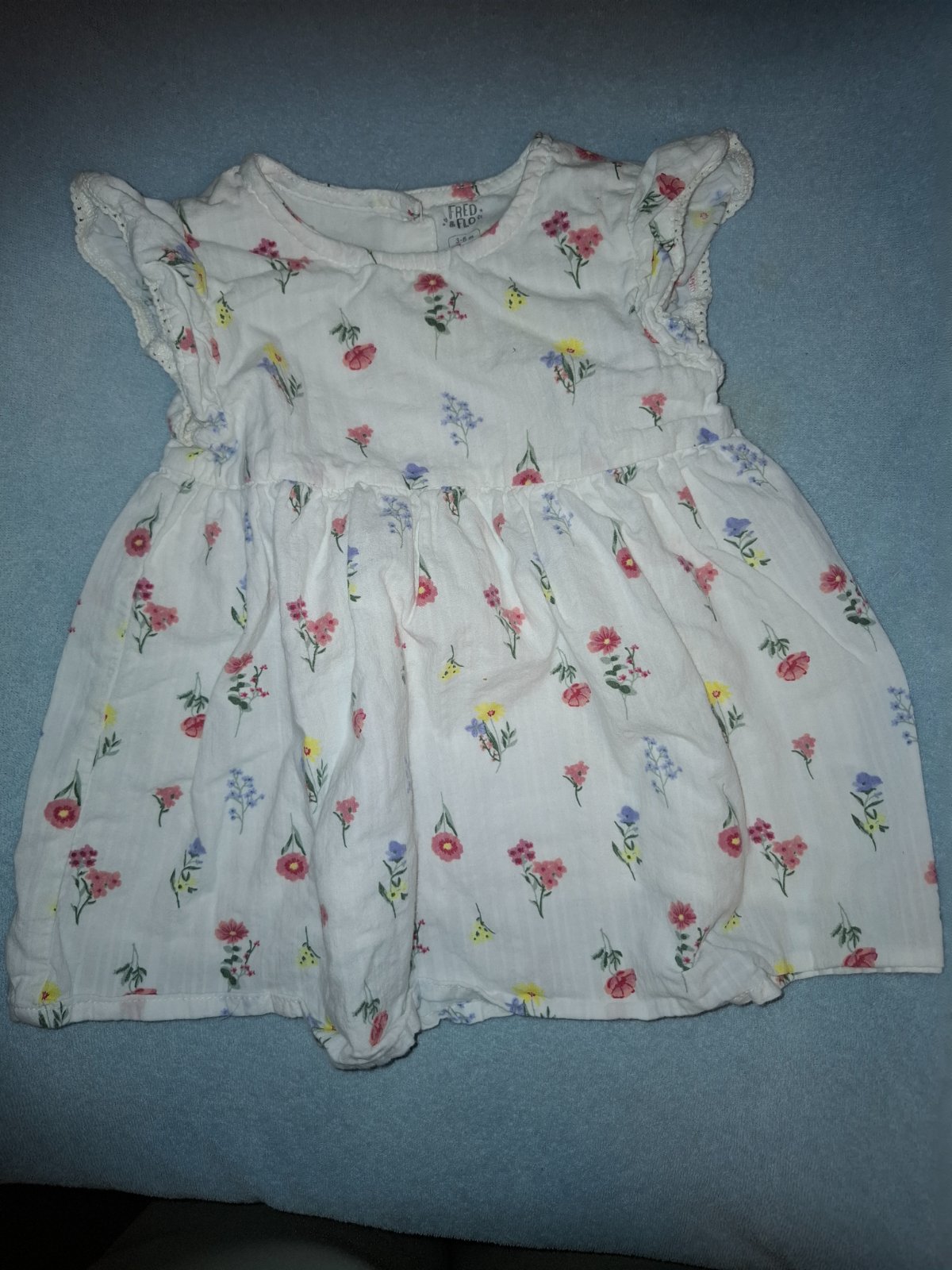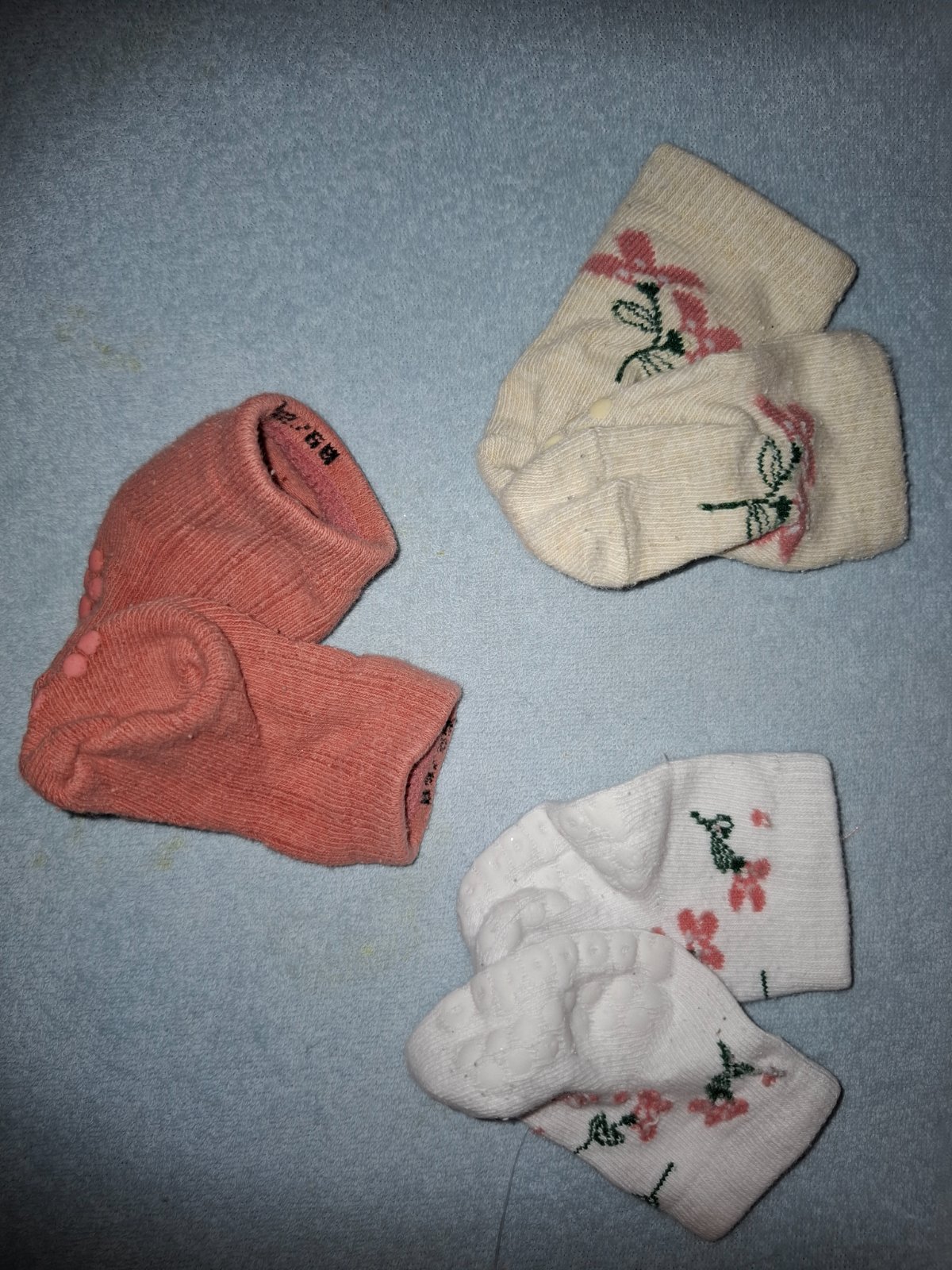 Balík oblečenia na donosenie (mix veľkosti) - 1x pyžamko, 2x nohavice (ružové sú teplejšie), 3 tričká. Naše dievčatá nosili cca od 6 - 12mes. Vecičky sú s fliačikmi, žlté nohavice vyšúchané kolienk...