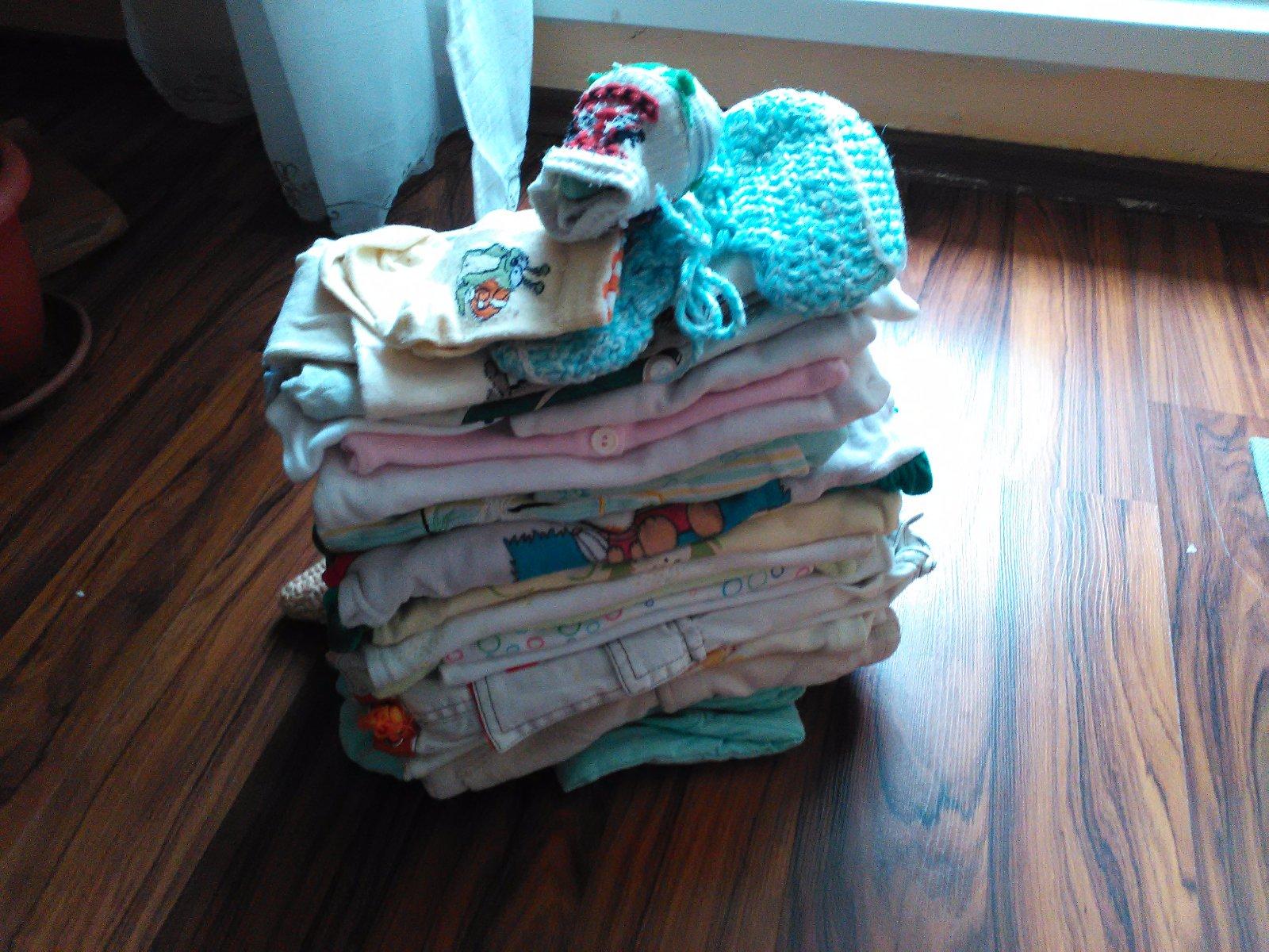 Balík oblečenia, 22 vecí, mix, nosené, Vecičky sú na bežné nosenie, nie exluzívne k doktorovi. Len aby ste nemuseli vkuse prať, je lepšie mať viacej vecičiek.. Balíček obsahuje: teplú béžovú bundičku, dupačky bez rukávov, nohavice na traky, biele body s dlhým rukávom, body s krátkym rukávom s zelenými krúžkami, zelený vršok s dlhým rukávom, body s dlhým rukávom biele s hviezdičkami, dupačky žlté bez rukávov- minižmolky, fleesové rukavičky-minižmolky, 2x zelenkavé dupačky s dlhým rukávom, zelené oteplené dupačky vrchné bez rukávov, háčkované papučky.3x tričko s dlhým rukávom, 2x s krátkym, 1x pančuchy, 2x ponožky.