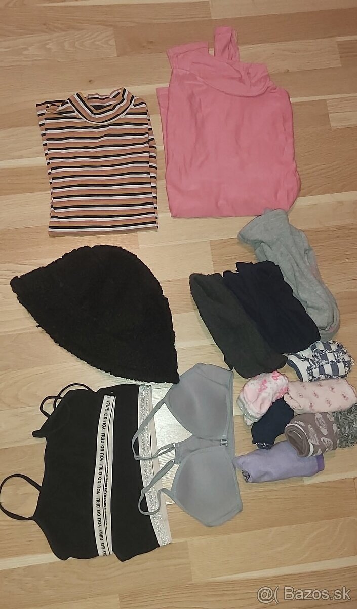 Ponúkam balík oblečenia pre slečnu velkosť 158-164 všetko v super stave niečo je tam úplne nové len oprané.Veci sú čisté.Značky H&M,Berska,Rezerved,Zara a iné.Pošlem po úhrade na učet ako balík na poštu to víde najlacnejšie.K baliku darujem zimne topanky velkosť 37.Balik obsahuje tieto veci: