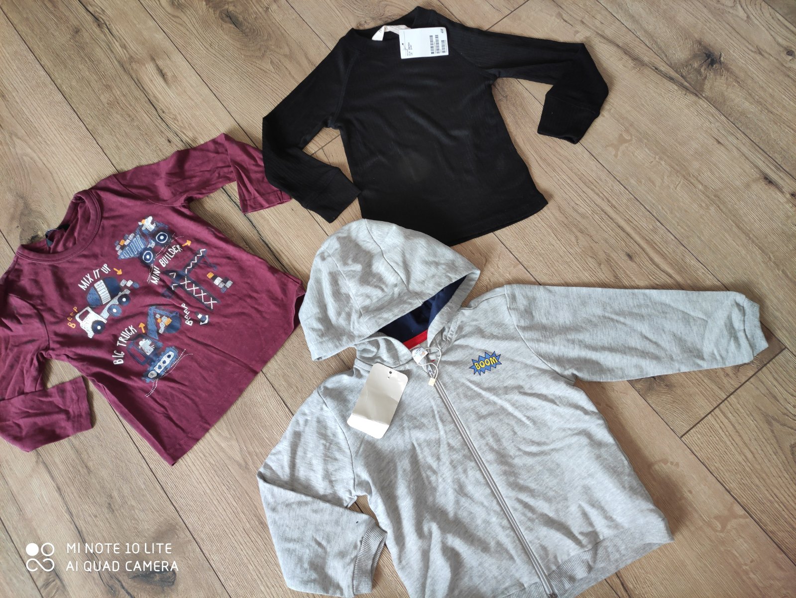 Veľkosť tak 92-98 mikina nová značka defacto tričko malo nosené veľkosť 92-98 značka George a čierne tričko vraj termo značka HM Nové veľkosť 2-4 roky cena za všetko spolu