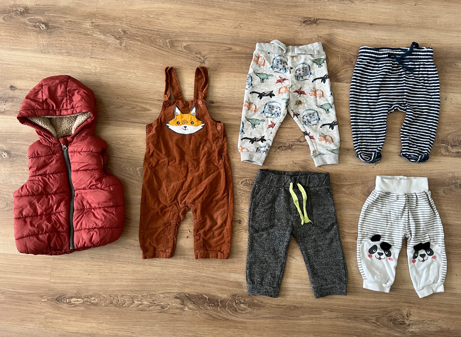 Balíček obsahuje vestu (Fred&Flo), tenšie mencestrové nohavice na traky (So Cute) a 4 tepláky ( mix značiek ako Fred&Flo, Pepco, Next,…).