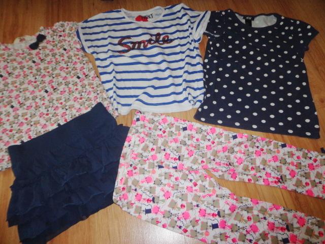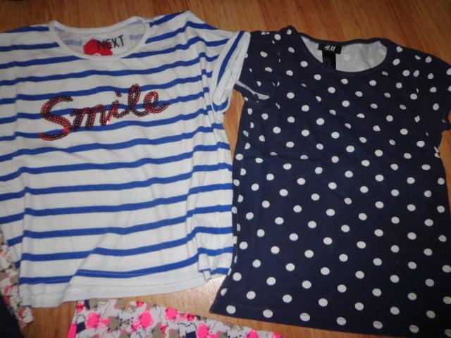 Tričko tm. modrá s bodkami, HM, veľkosť 4-6 rokov, tiež nosenejšie, ale stále pekné cena: 2 Eur