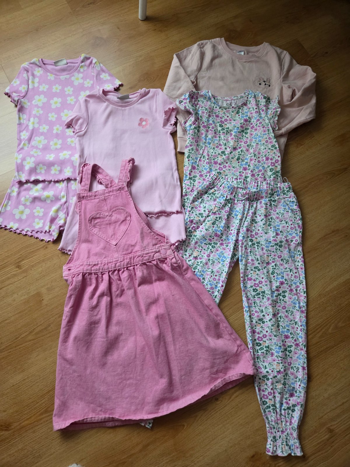 Uplne nove Zelene H&M, 8€ Modre Mickey Mouse 10€ Zlte sinsay 5€ Rifle a jednorozcom mam 2 velkosti, 138 a 140,kus 5€ Ruzove jednorozec lupilu 122/128,5€ Tmavoruzove HM,5€ Teplaky Sinsay 3€ Spolu: 43€