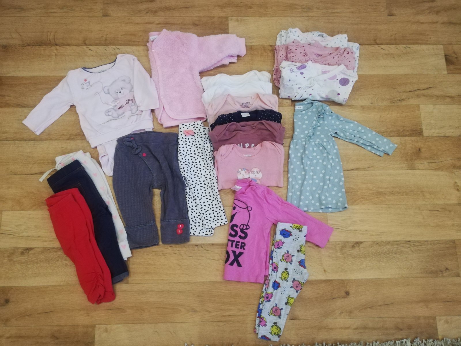 Predám balík oblecenia pre dievcatko. 7x nohavice 2x mikina (top stav) 5x pyzamko 3x body dlhy rukav 5x tricko s dlhym rukavom Cena spolu 10€.