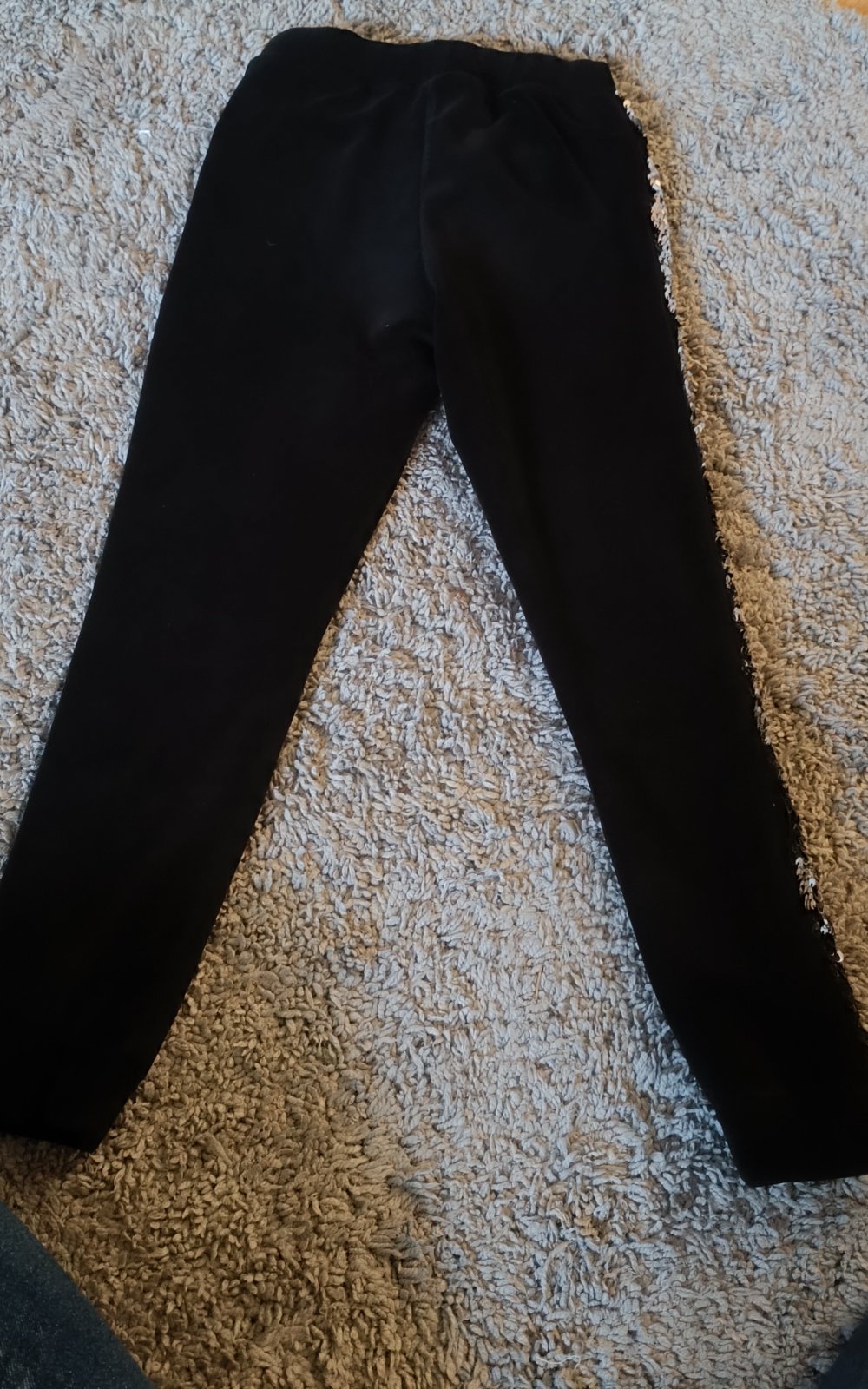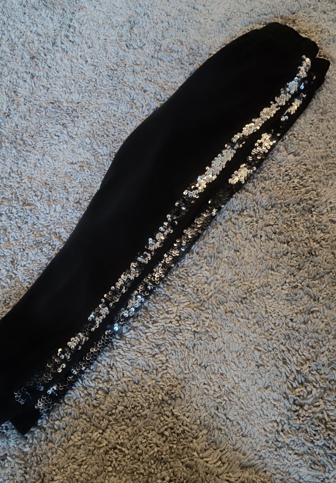 Čierne tepláky zamatové s flitrami na jednej strane trošku rozparane dobrý stav