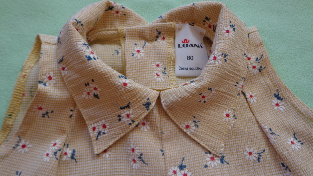 Táto blúzka je ako nová, je veľmi pekne riešená, zapínanie vzadu. Odporúčam, je štýlová. Veľkosť 80. Nosili sme ako 86. Nosili sme k nim riflovú sukňu s červeným šarkanom, pozri v albume.