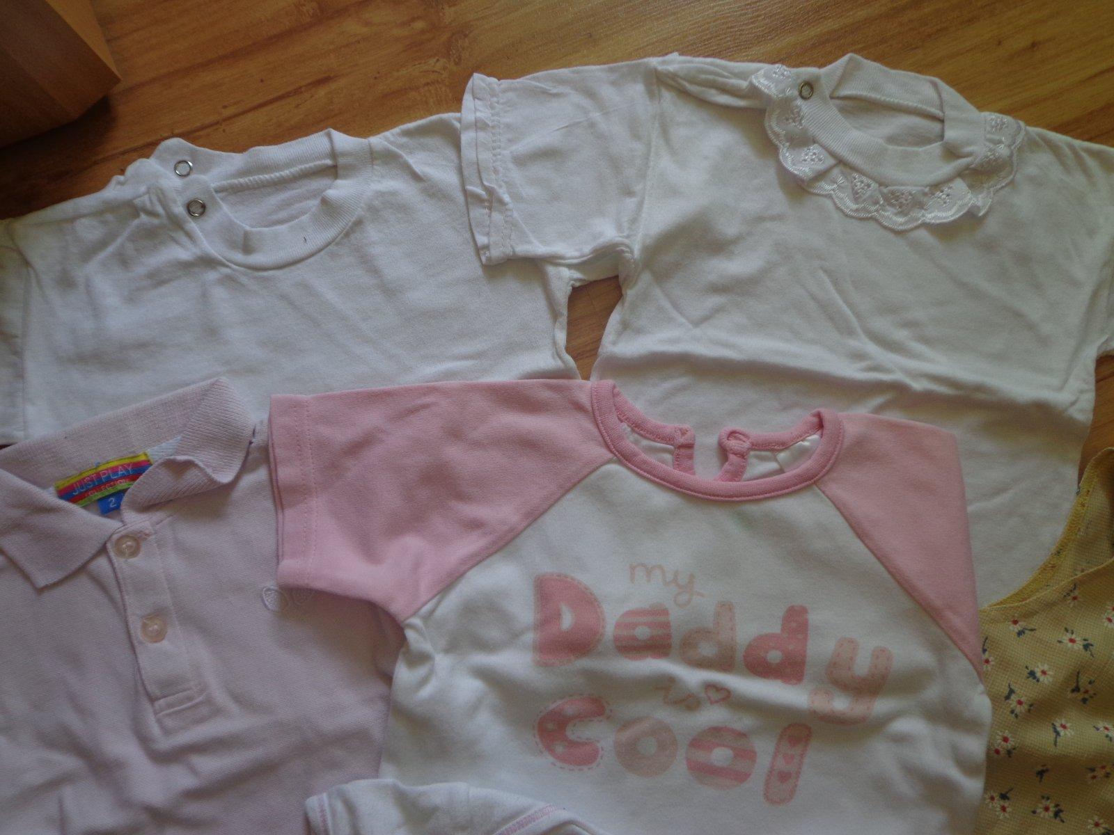 Cena za tričká a body, veľmi dobrý nosený stav, veľkosť 86. 1 x polokošeľa, 1 x tričko s nadpisom, zapínanie na krku pre ľahšie obliekanie, 2x biele tričko bavlnené, nosili sme pod šaty. Cena spolu: 6 Eur.
