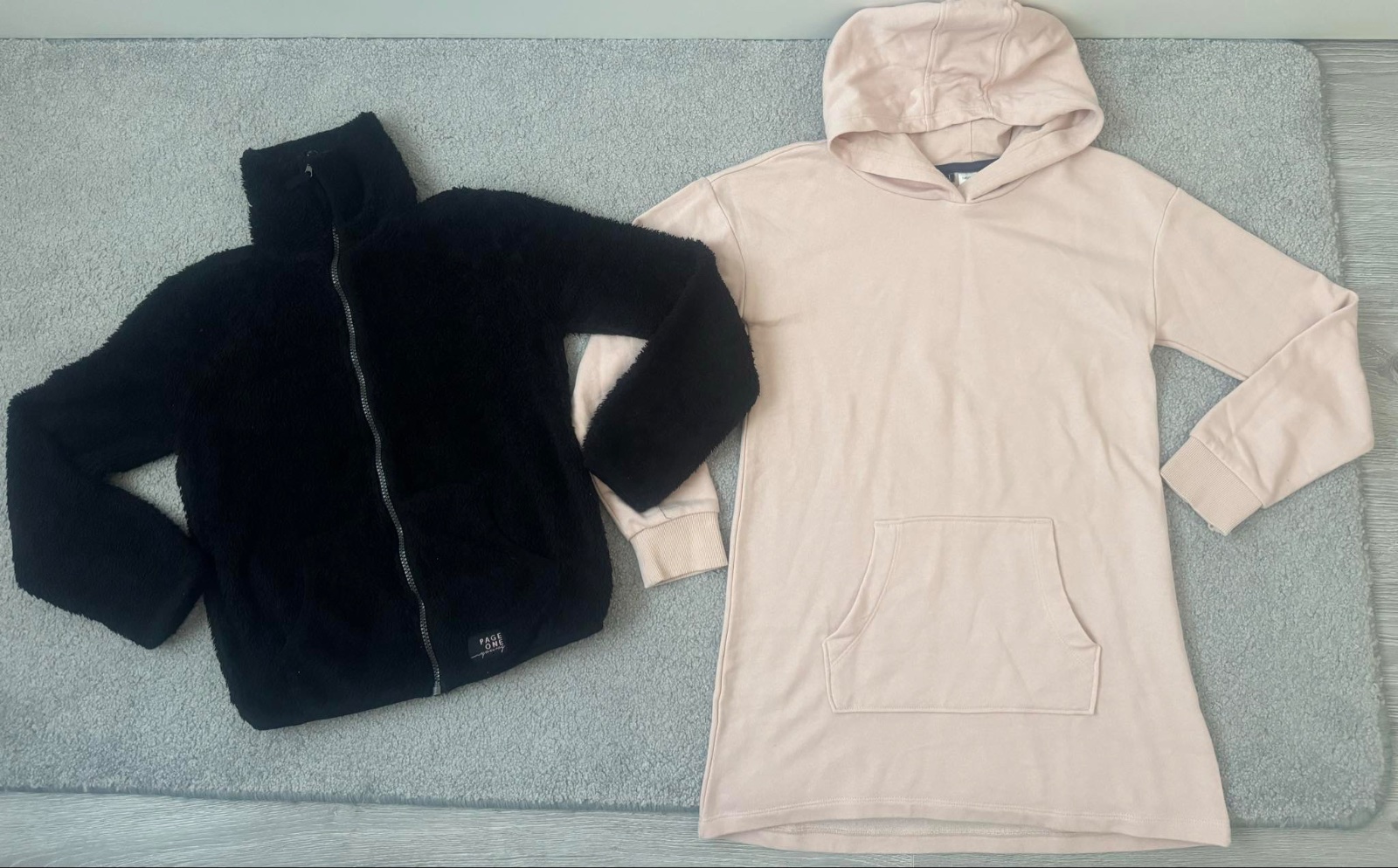 146/152- hrubá Cierna mikina, jesenné šaty nenosené. Spolu 8e