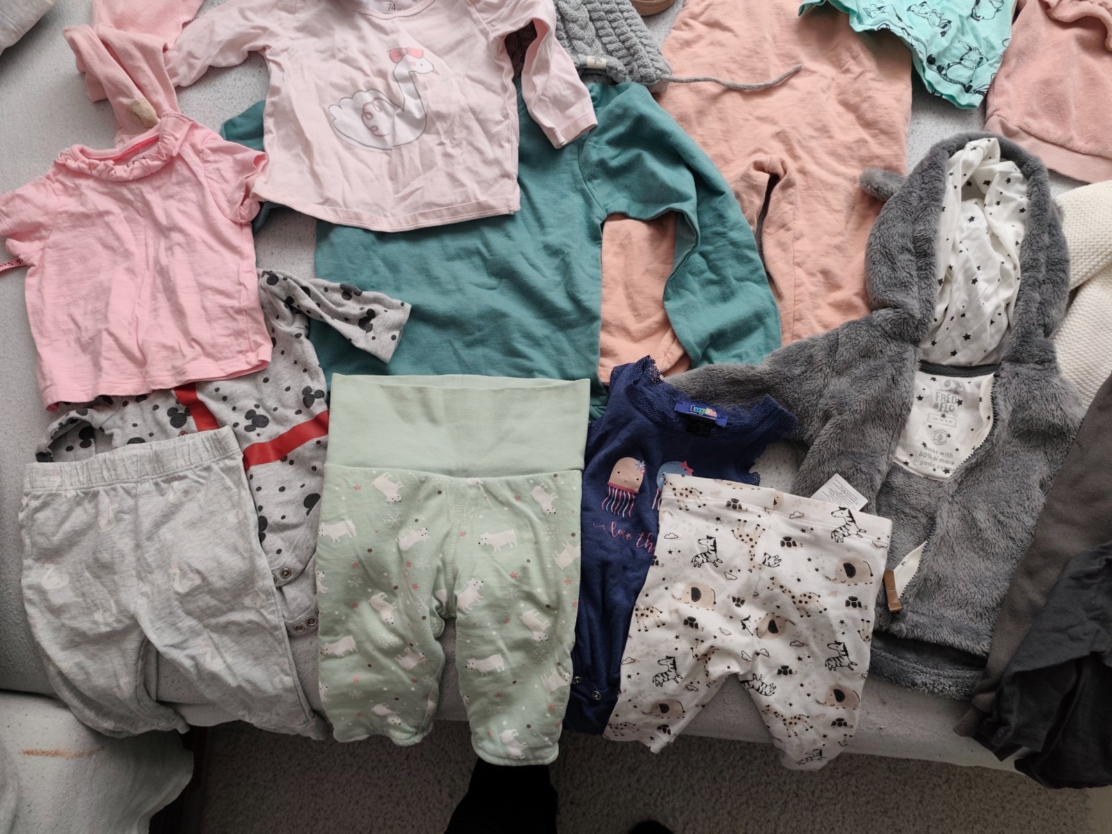 Posuniem dalej mixik oblecenia pre dievcatko velkost 80, spaci vak, pyzamo, dievcensky setik, mikinka cez hlavu, 2x teplaky. V bazariku mam aj ine dievcenske vecicky.
