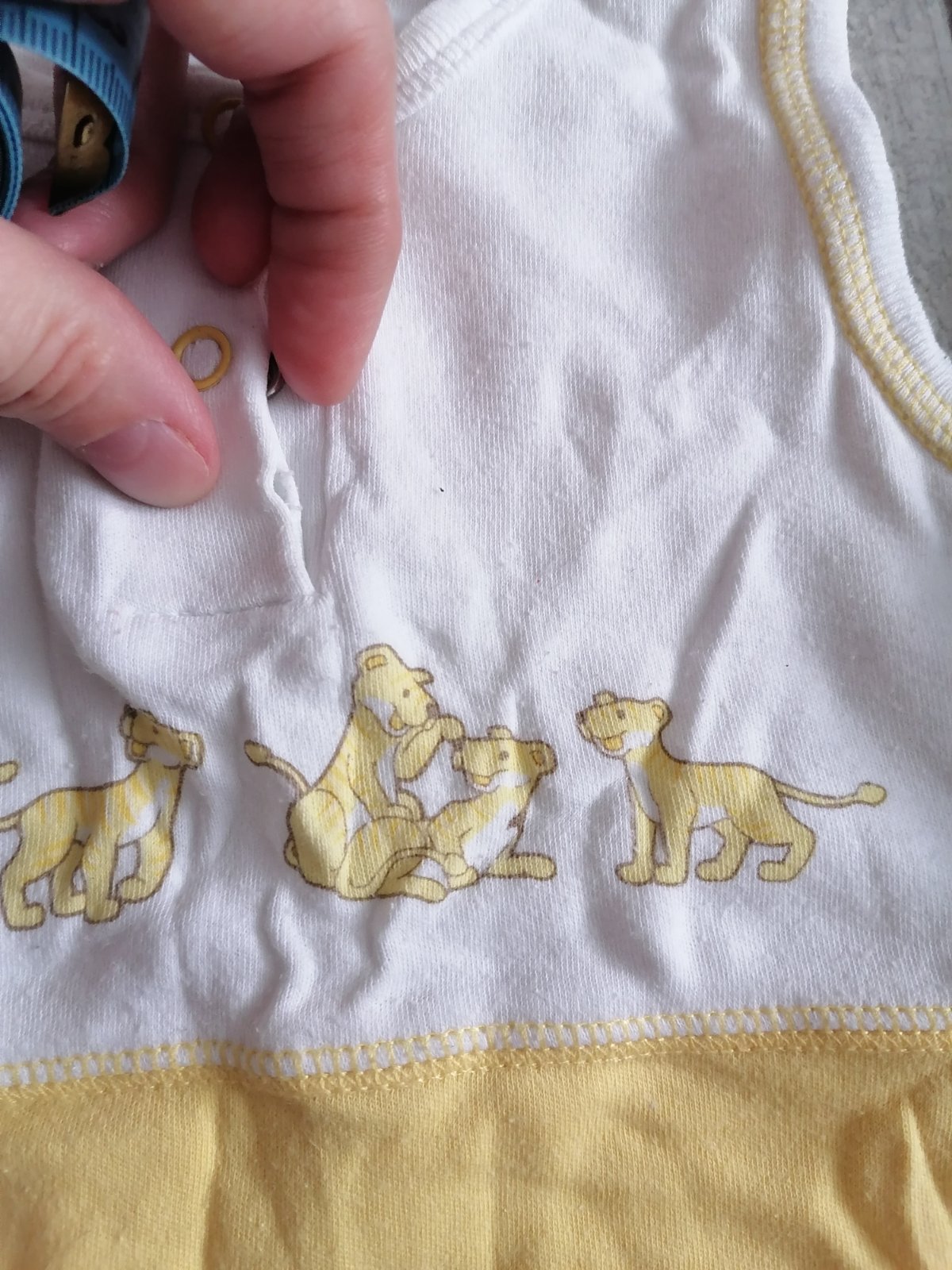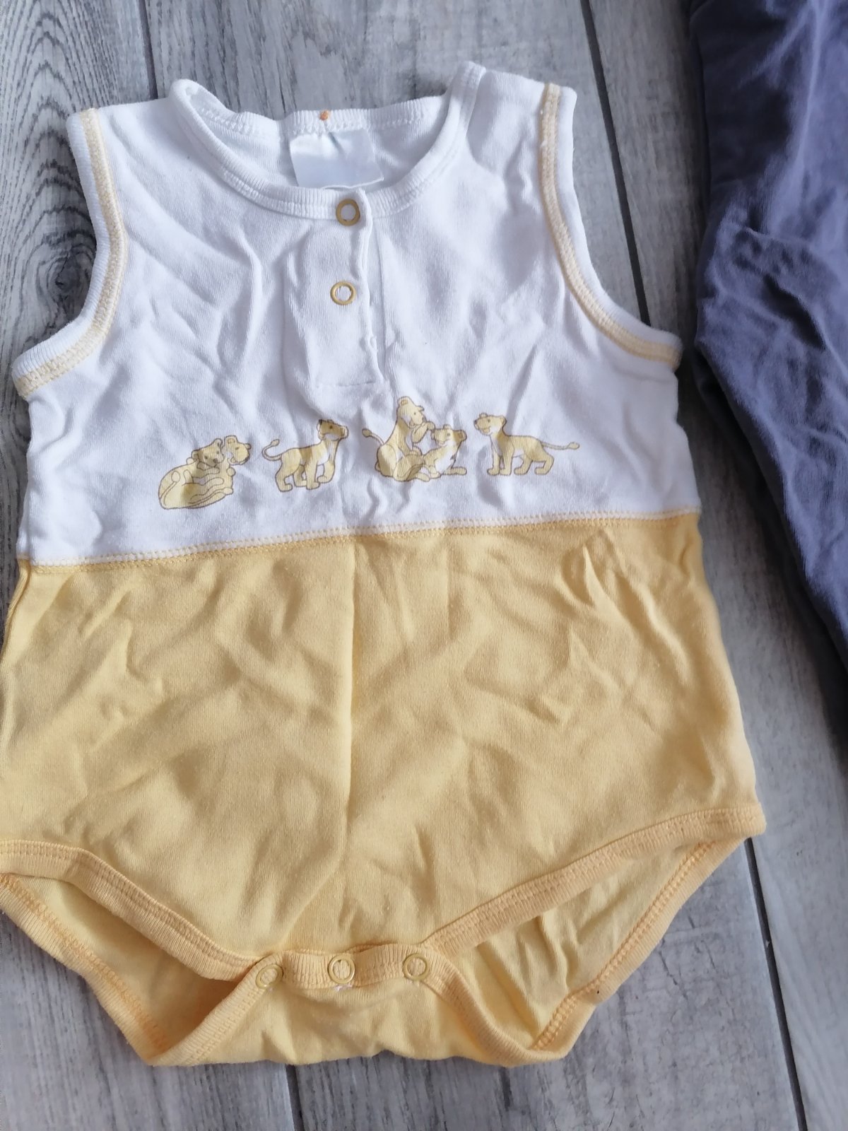 Pekný zachovalý stav. Veľkosť 80. Kuk miery.. tielkové body ma fliačik, žlté mini dierka sa riskuje, tepláky super stave.