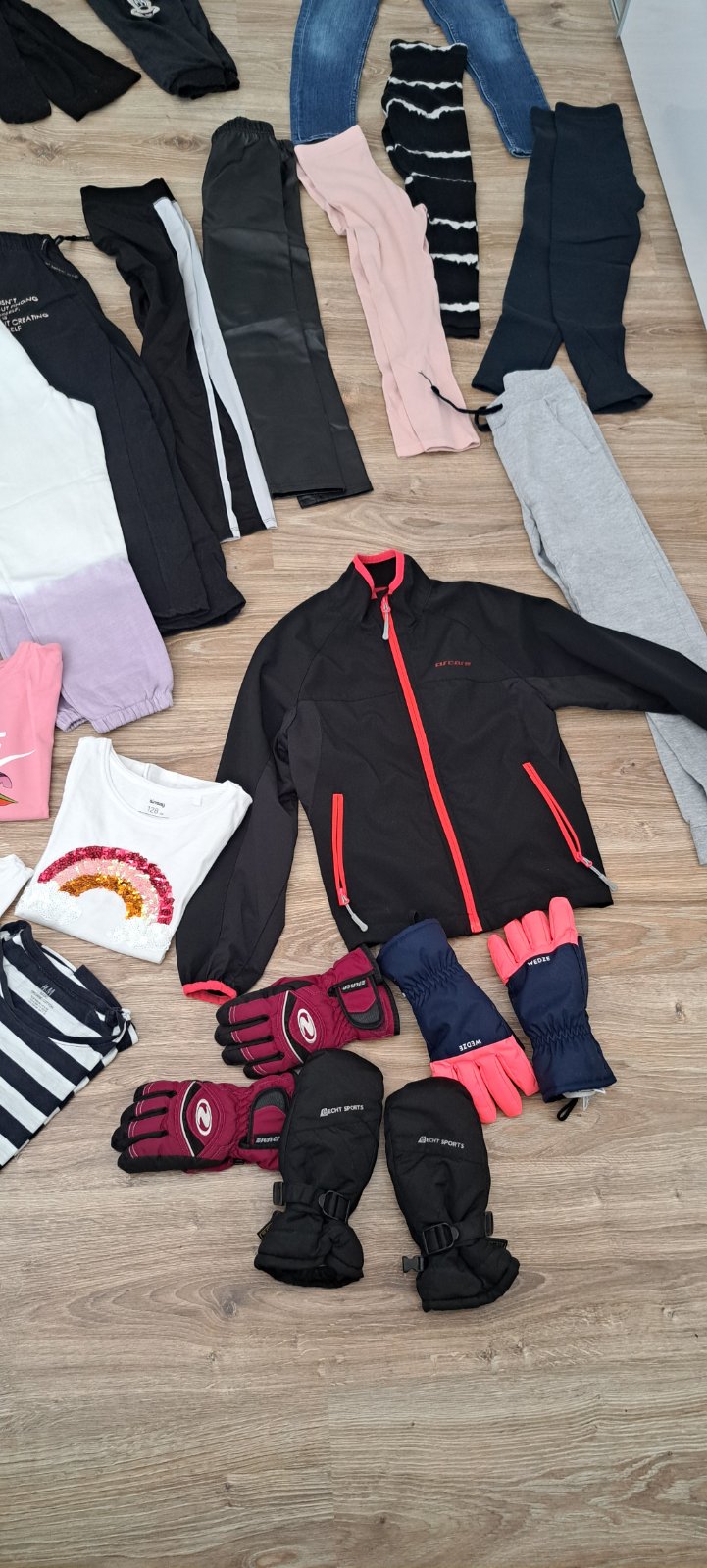 ♡ 2 x tričko dlhý rukáv, 2 x mikinka, 1 x tenká športová bundička, 3 x rukavice, balík ponožiek, 5 x pančušky