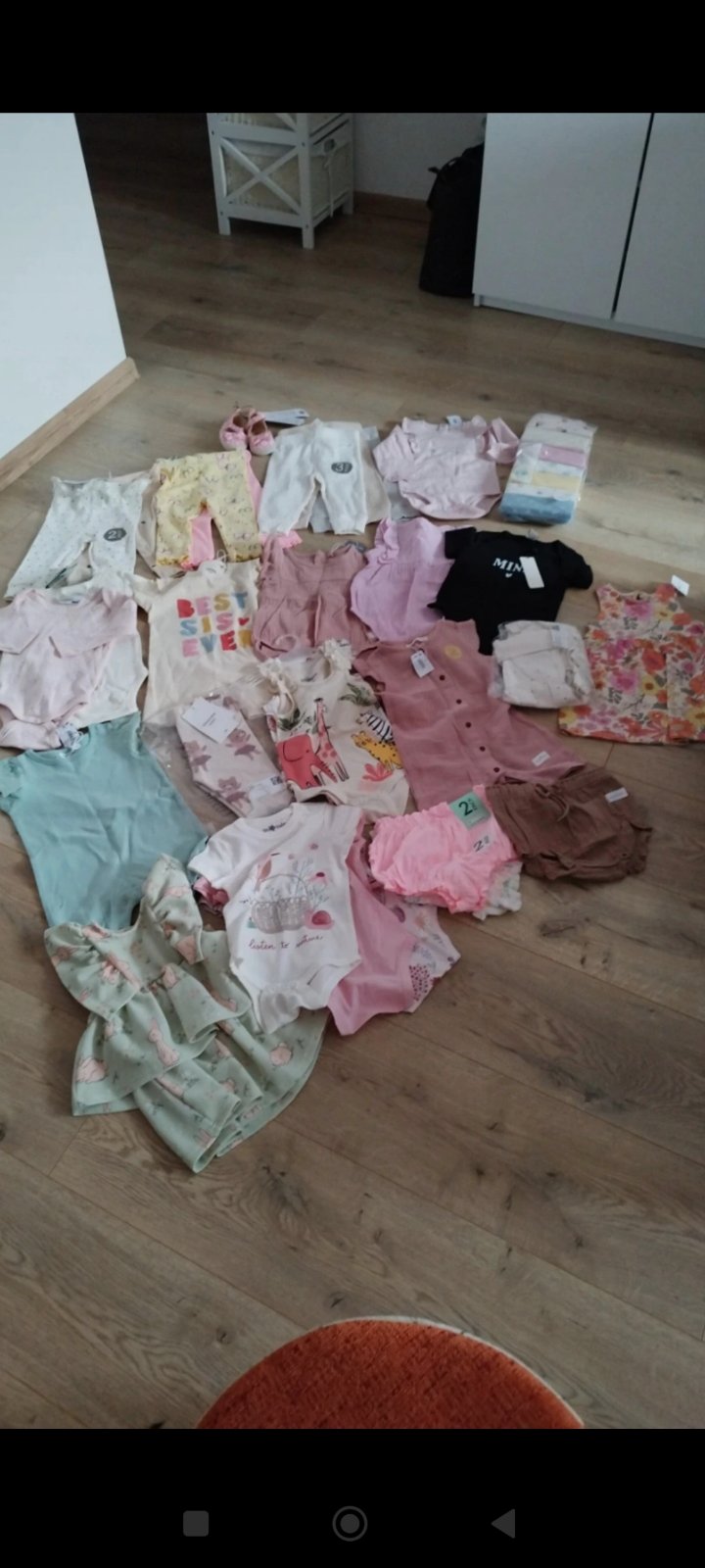 ružové šaty Sinsay 68 veľkosť 3€ kvietkave šaty F&F 3-6 mesiacov 3€ tričko Lupilu 62/68 veľkosť 3€ tepláky Koala baby 68 veľkosť 3€ legínky Disney 68 veľkosť 2€ alebo spolu 12€ všetko ako nové