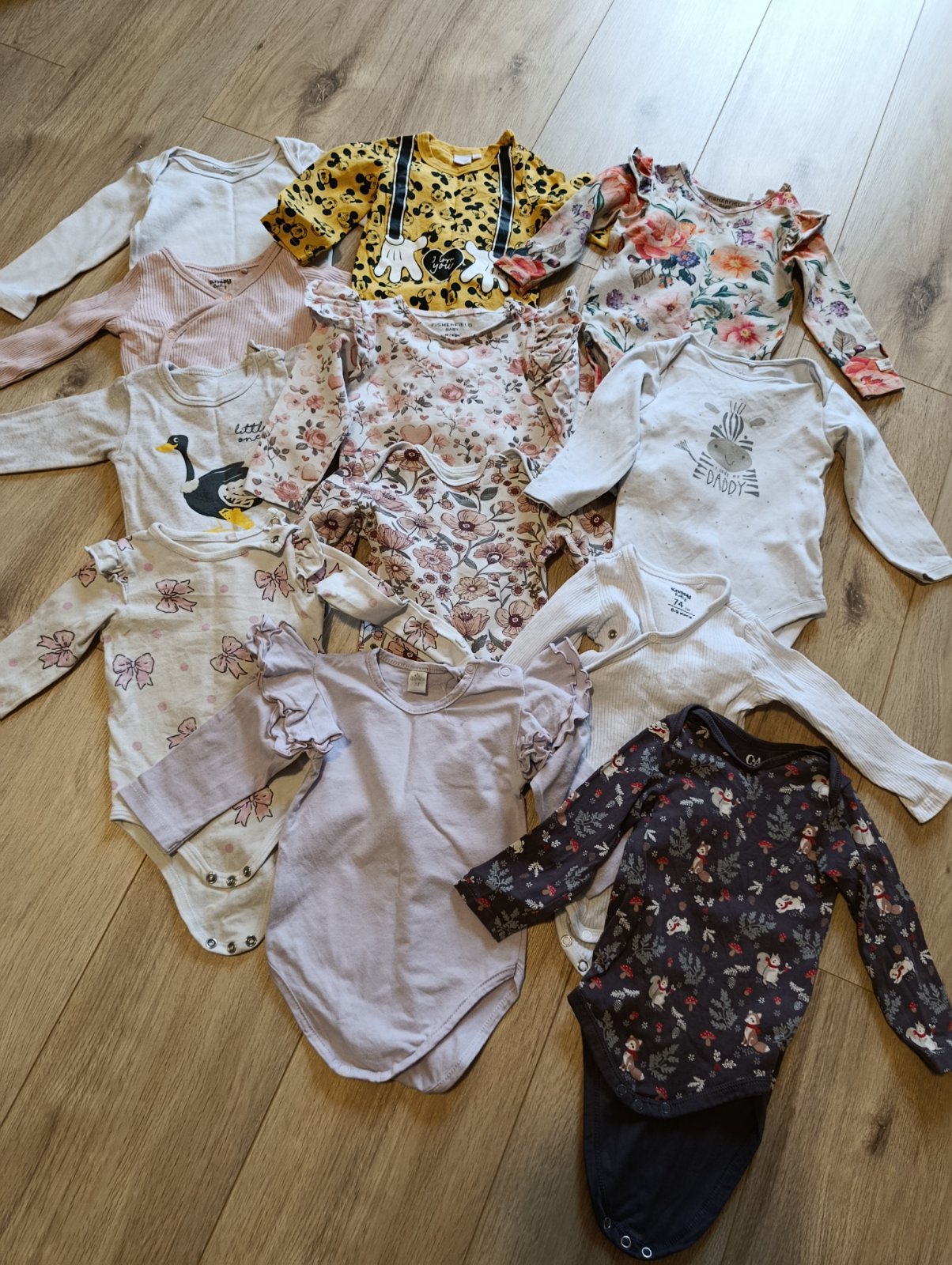Predám balík oblečenia pre dievčatko veľkosť 74. Veci sú vo výbornom stave, sú čisté a nepoškodené. V balíku sú bodyčká, legíny (legíny Zuzi sú zateplené), mikinky, tričká, jedny pančušky, bundička, vesta, svetrík, šaty , dupačky, trakáče a overaly