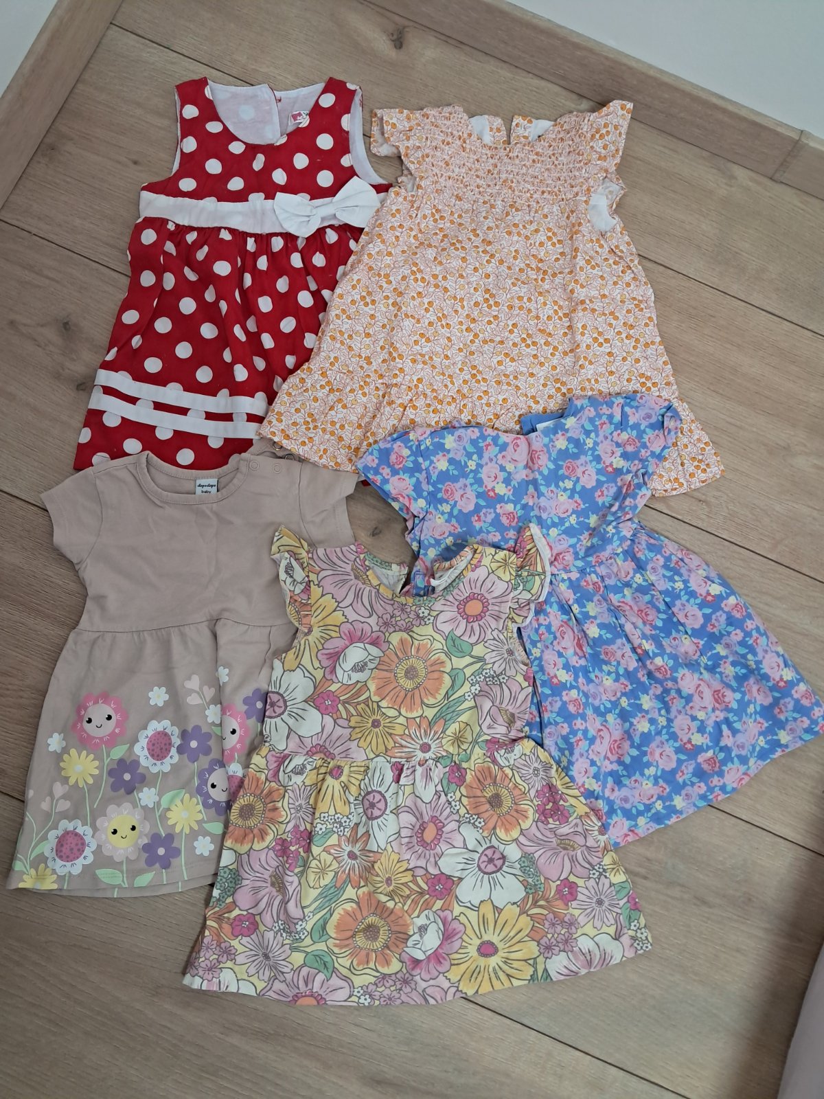 Veľký balík oblečenia pre dievčatko vo veľkosti 80. Je tam 12 ks oblečenia + 2x čapica a ponožky. Niektoré veci sú nosené, niektoré len opraté. Celý balík v top stave. Cena balíka 9,50 €.