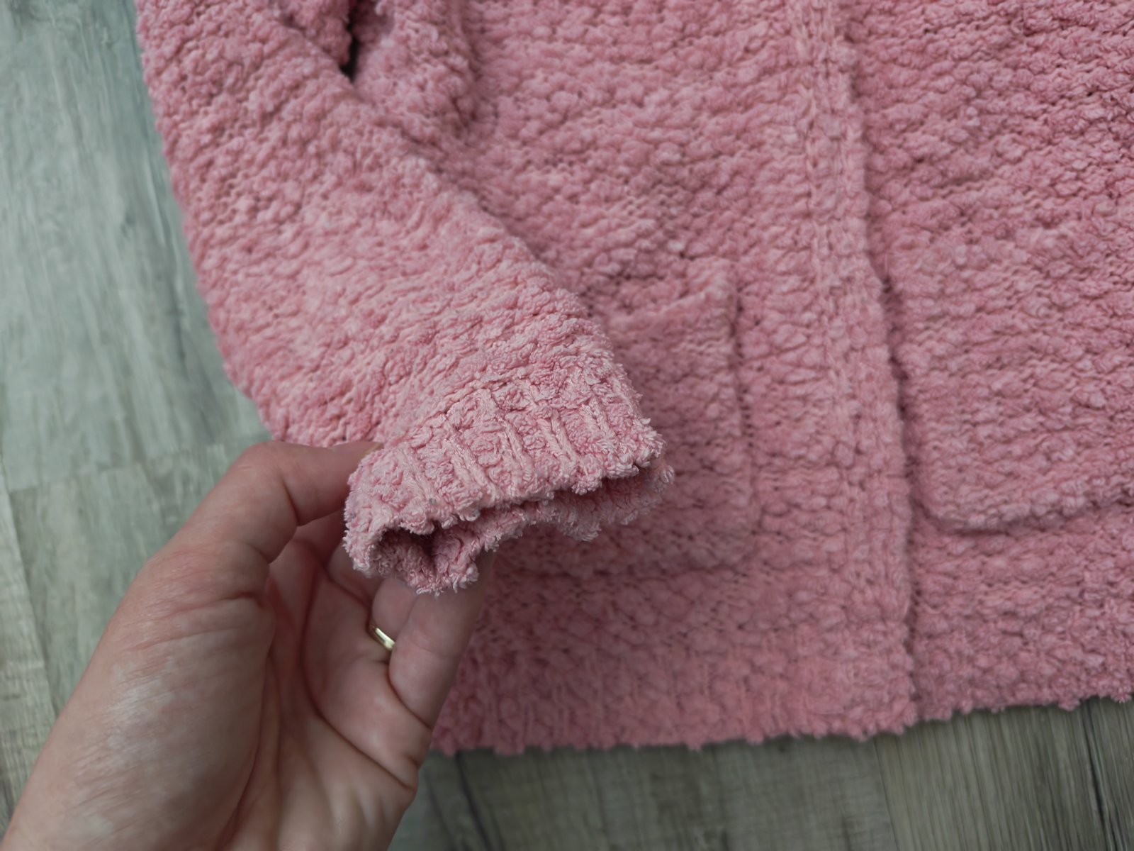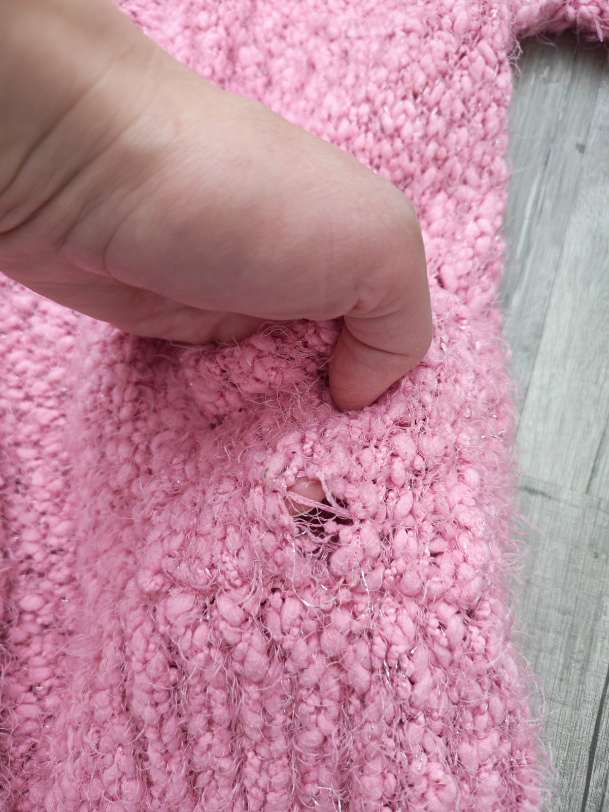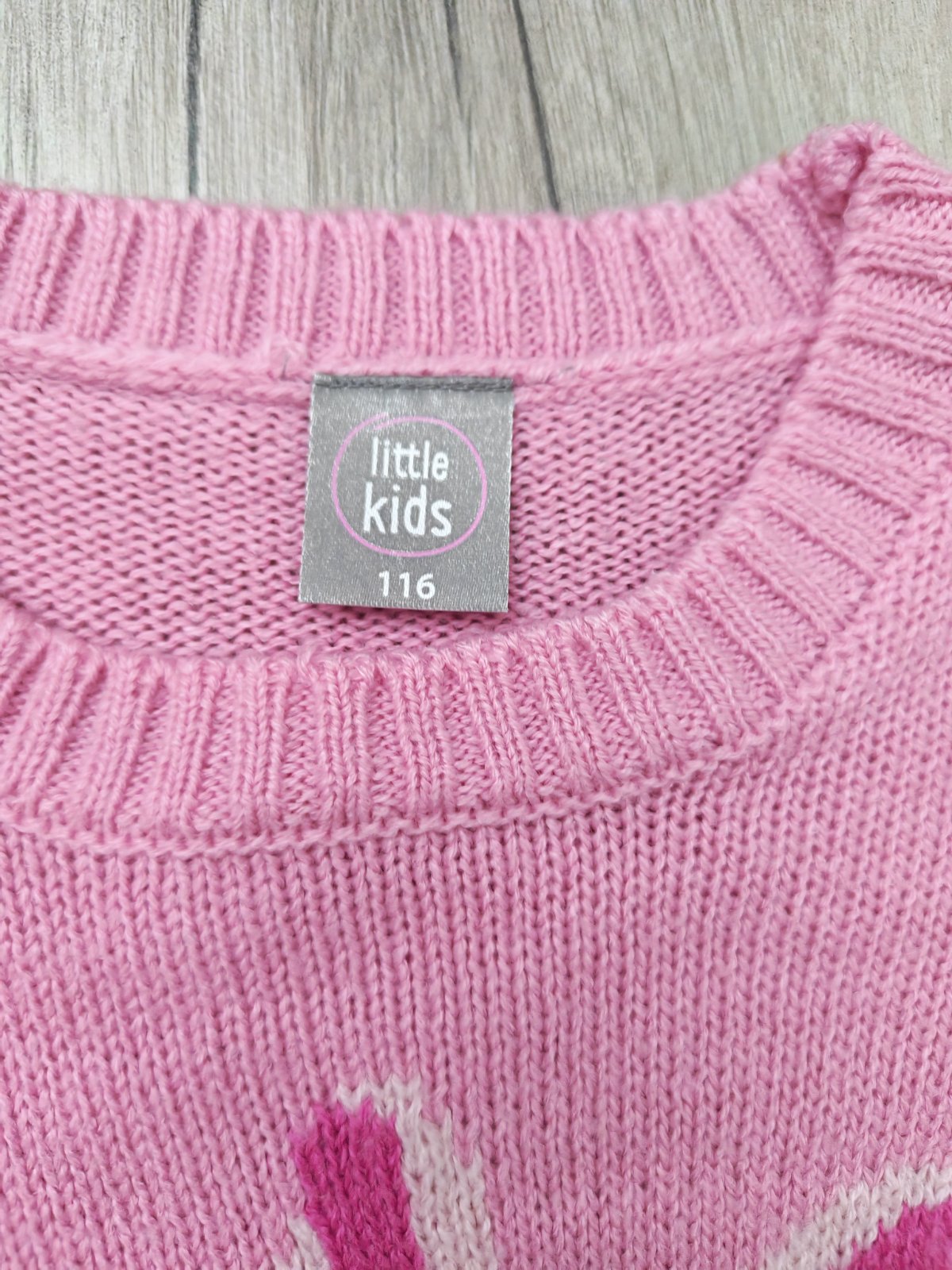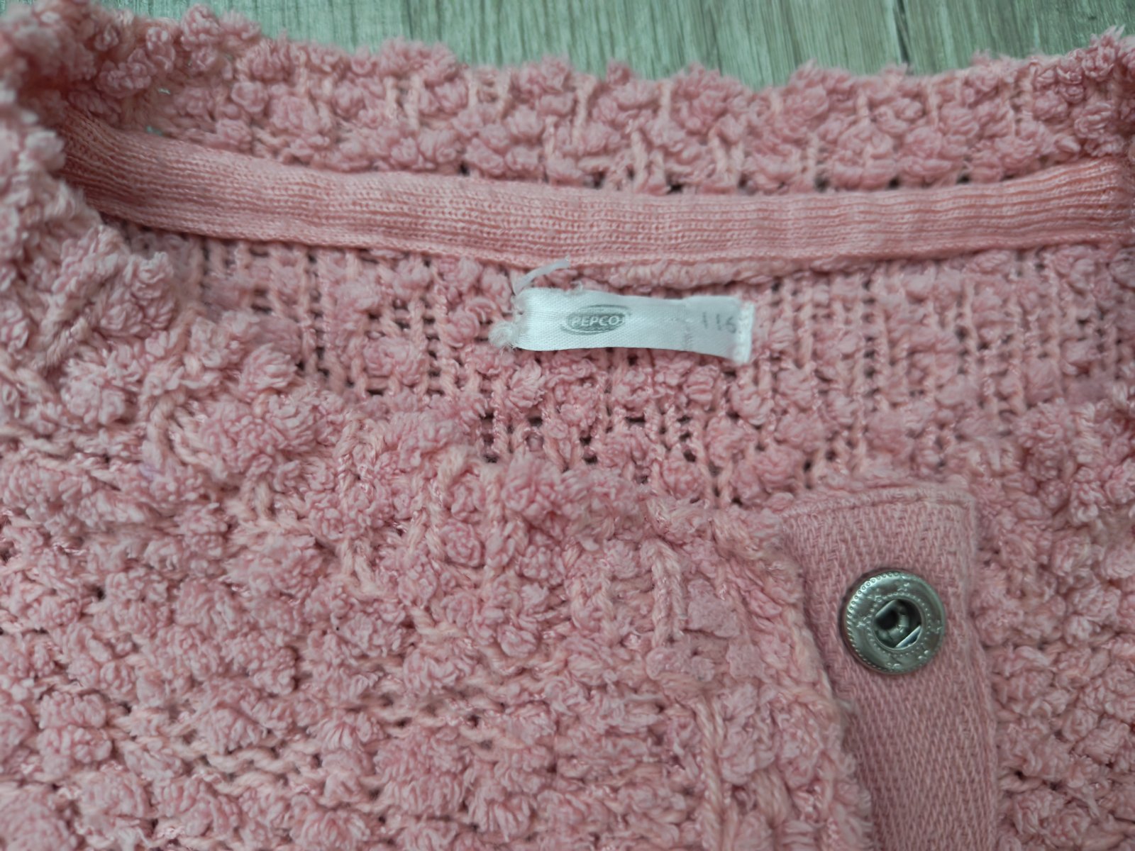 Ružový svetrík na gombíky už iba grátis bol často noseny,takže už to vidno. Horný gombík sa neda zapnúť. Veľ.116 zn.pepco