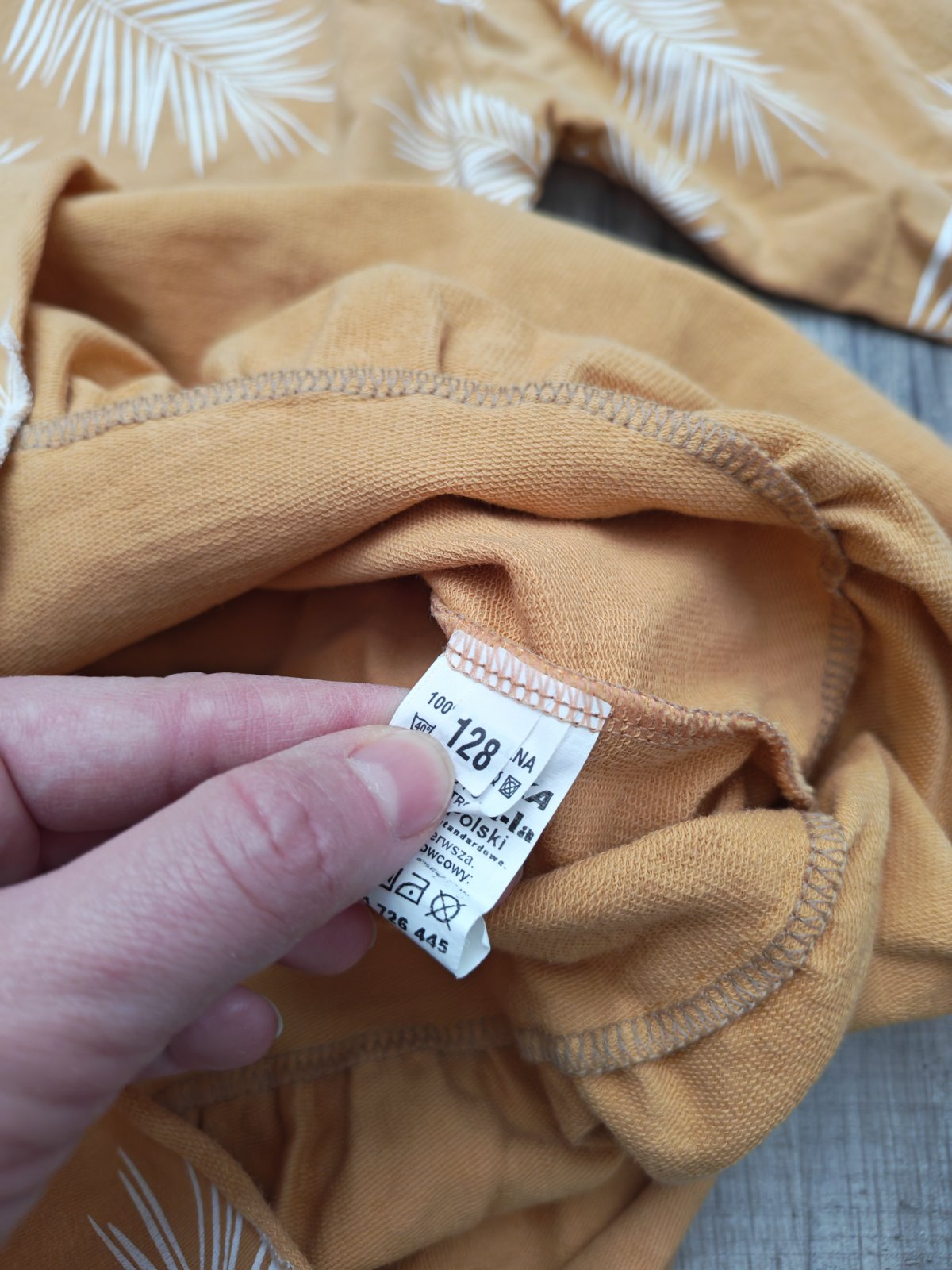 Horčicove šaty zn.mam ich z detského butiku veľkosť 128, trochu vidno pranie a niektoré listy sú popukane ale nič strašné.