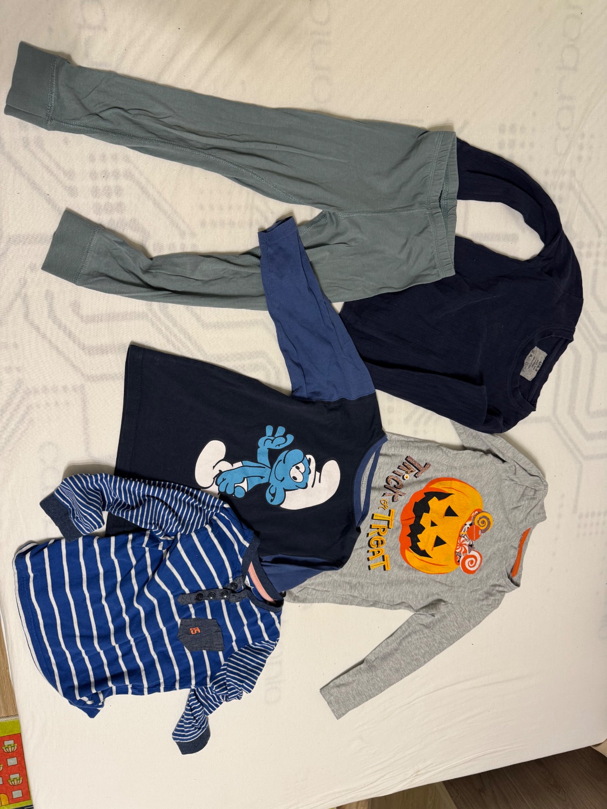 Mix oblečenia pre fešáka 5xtriciek 1/košeľa 1 tepláky veľ 122,tričko čierne veľ 122 akurát na teplákoch je mini dierka medzi nohami nič strašné .(foto )