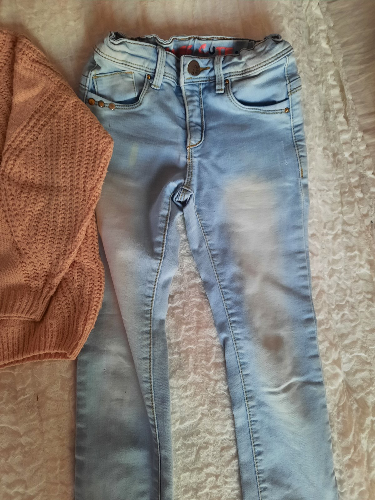 Rifle značky Takko, svetrík C&A. Veľkosť sedí na 122. Stav dobrý, nosený.