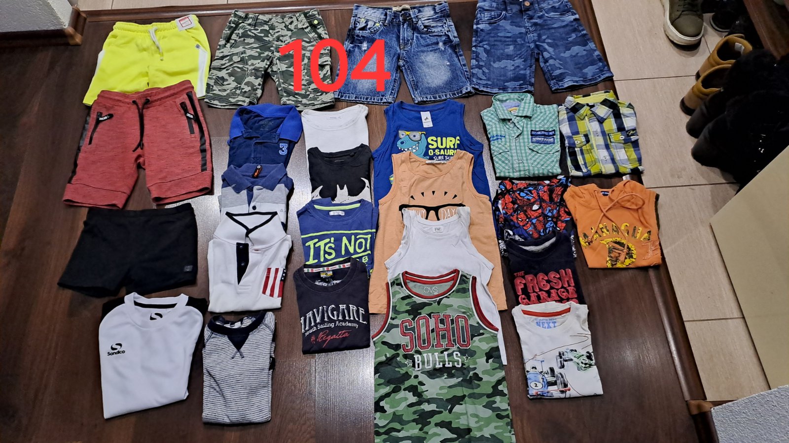 Chlapčenské oblečenie číslo iba 104. Cena nezahŕňa poštovné. 1x vetrovka, 9x tričko krátky rukáv, 2x nohavice, 2x kraťasy.