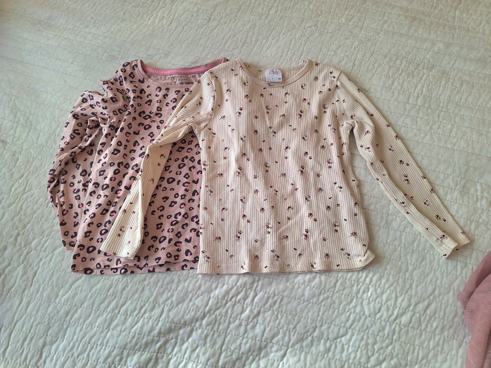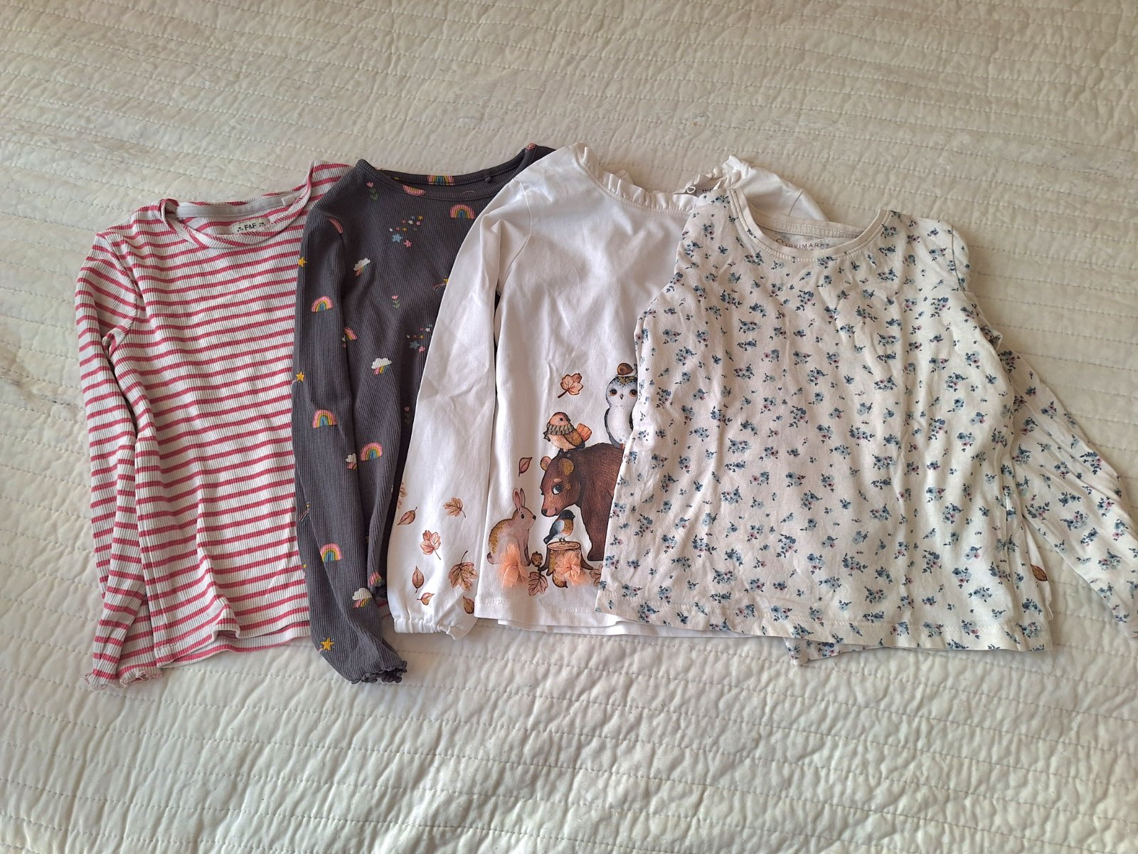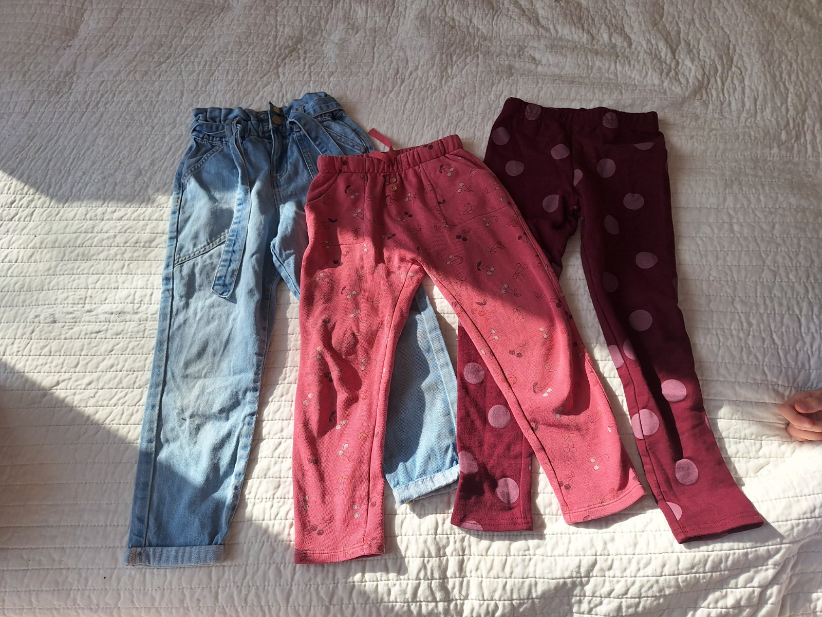 Dvoje naľavo F&F 7-8 r Ružové kúpili , písané 110/116,ale v pohode 122 Modré Shein 122 Cena za všetky