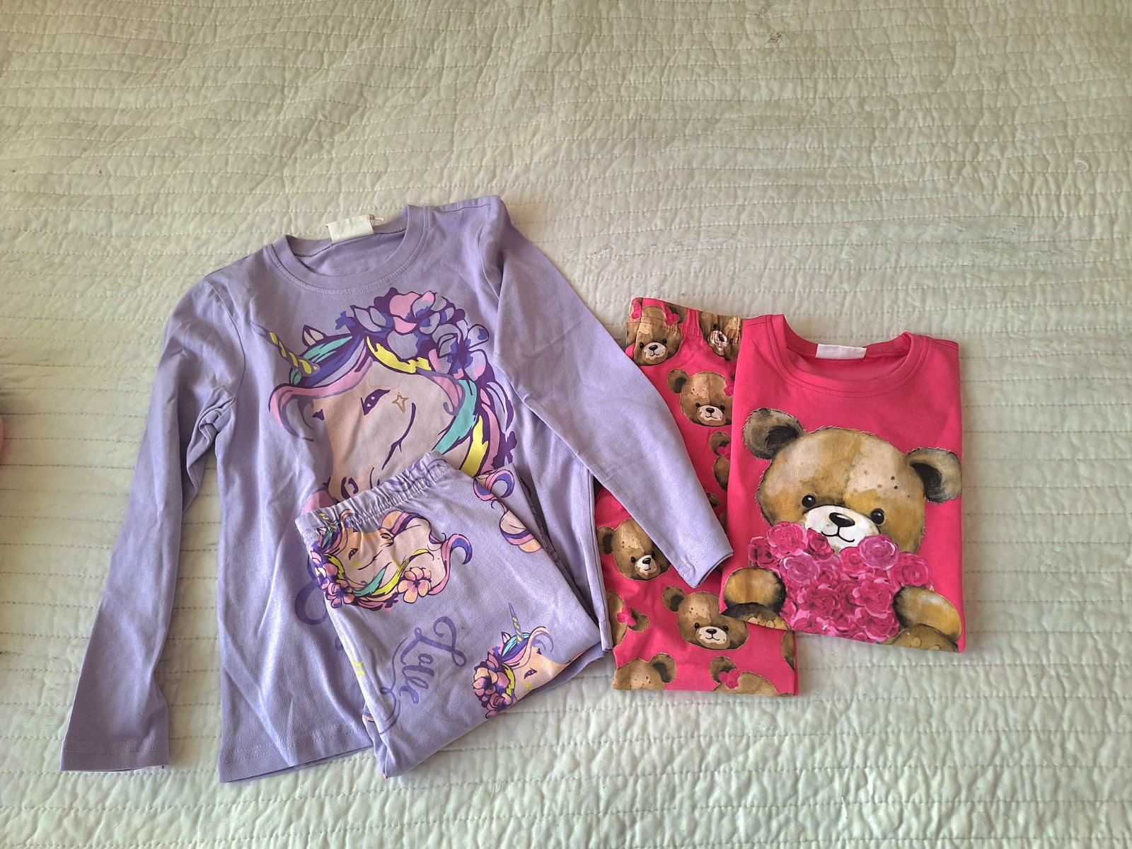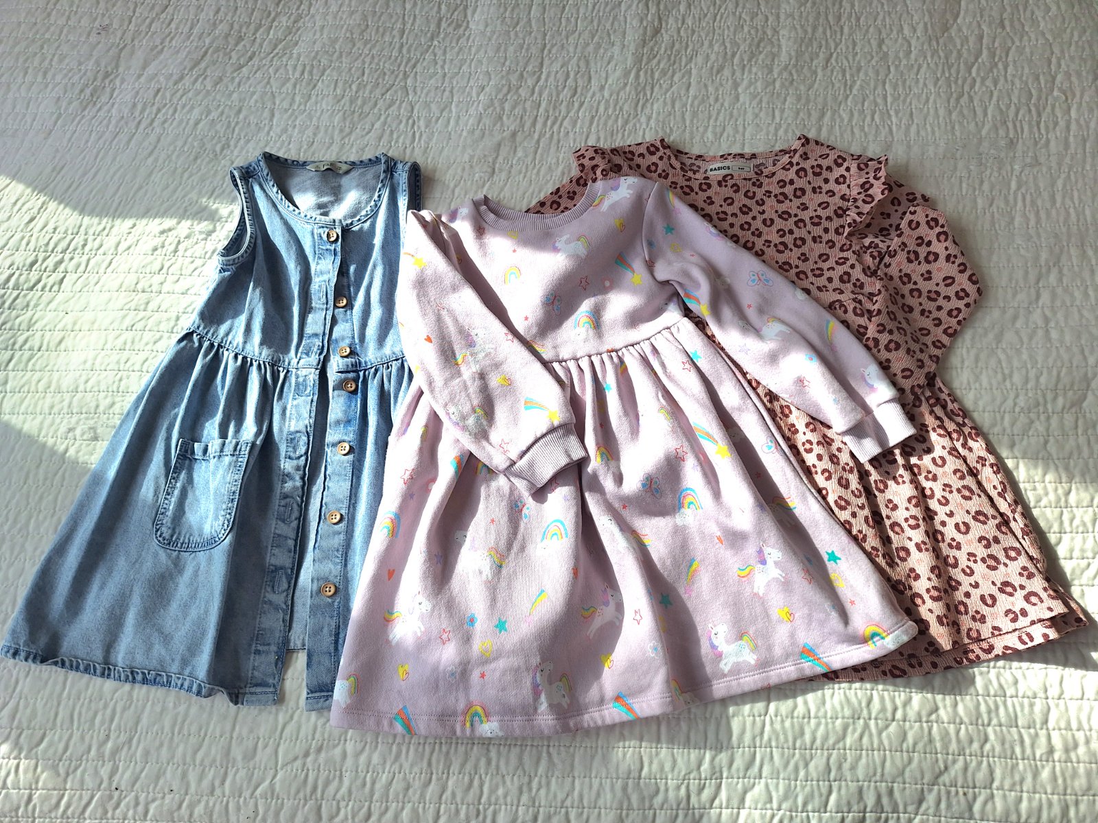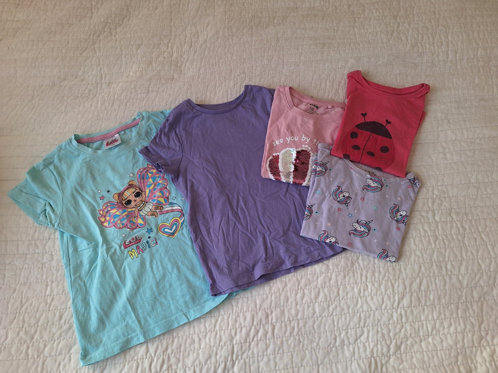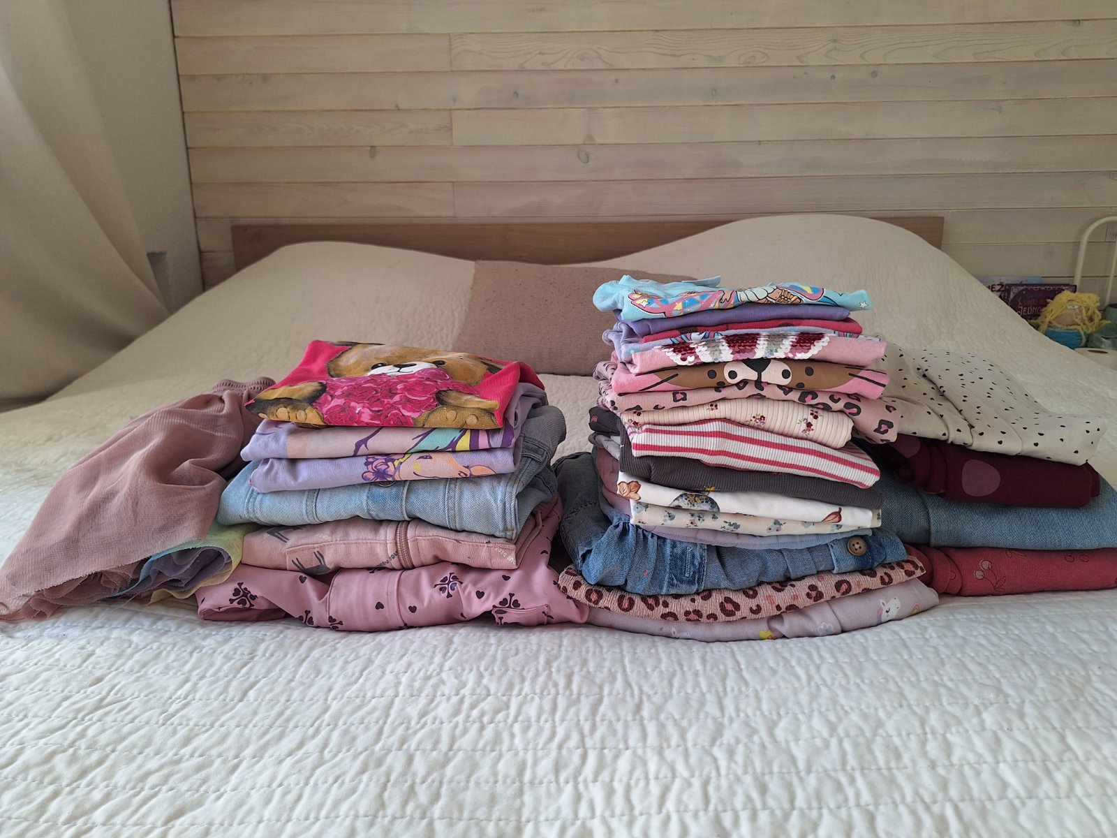 Dvoje naľavo F&F 7-8 r Ružové kúpili , písané 110/116,ale v pohode 122 Modré Shein 122 Cena za všetky