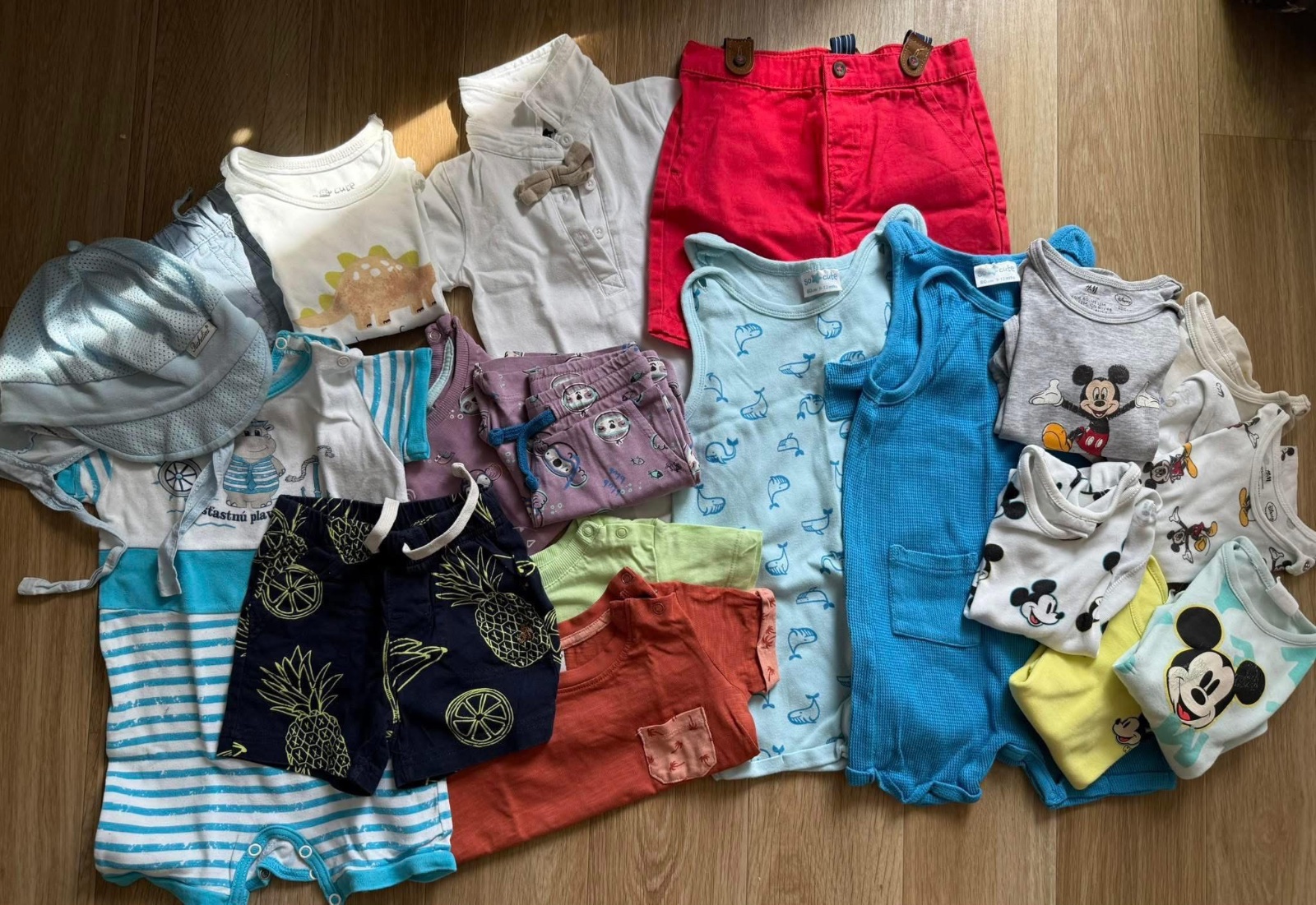 Body rôznych znaciek ako hm, coccodrillo f@f,pepco a iné. Veľkosť väčšinou 80.V rôznom stave niektoré nosené viacej niektoré menej, no nemajú žiadne dierky,fliaciky od jedla som nenašla. Predávam l...