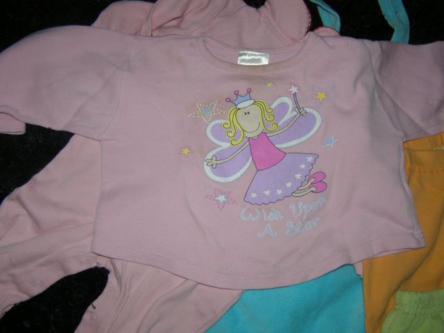 - ružové dupačky na 3-7 mesiacov - boli odžmolkované, sem tam vidno šitie a môžu sa ešte od žmolkovania objaviť dierky, ktoré som si nevšimla, ale nemusia. Kupované v anglicku
