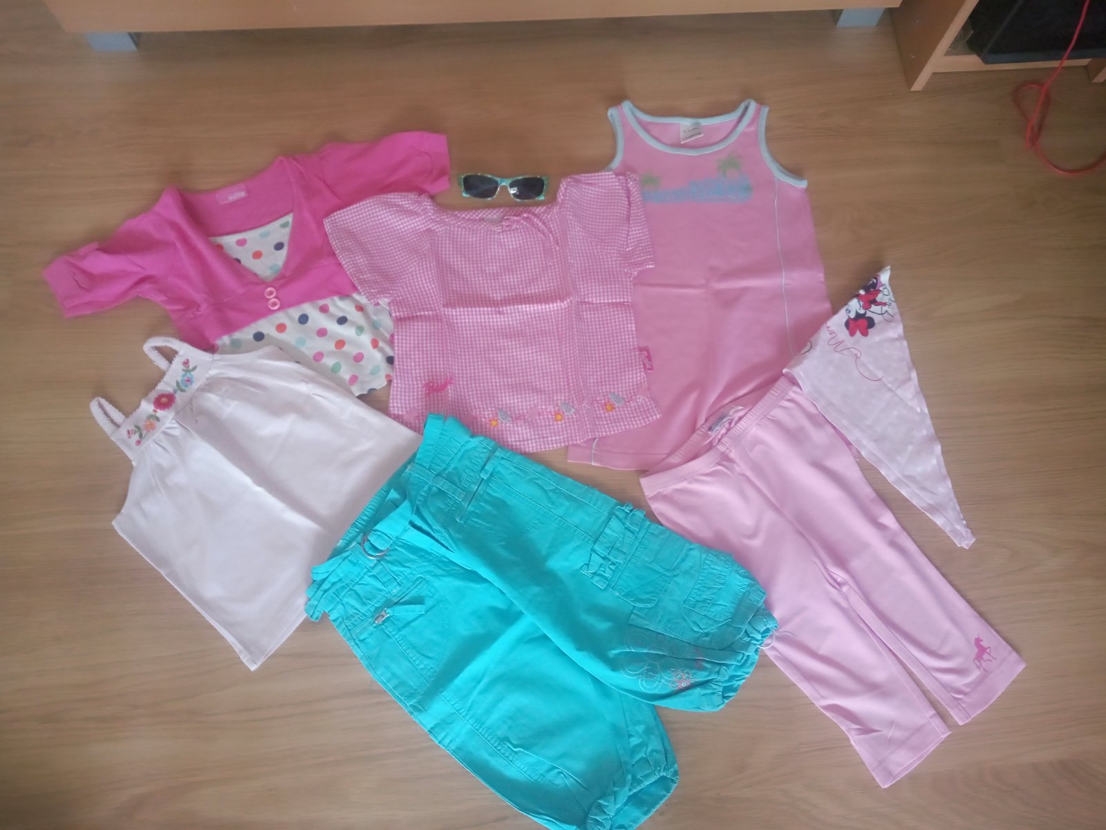predám balík letného oblečenia pre dievčatko vo veľmi dobrom nosenom stave, vo veľkosti 104, na 3-4 roky za veľmi dobrú cenu, veci sú veľmi dobre kombinovateľné medzi sebou a vy ušetríte na poštovnom , balík obsahuje: