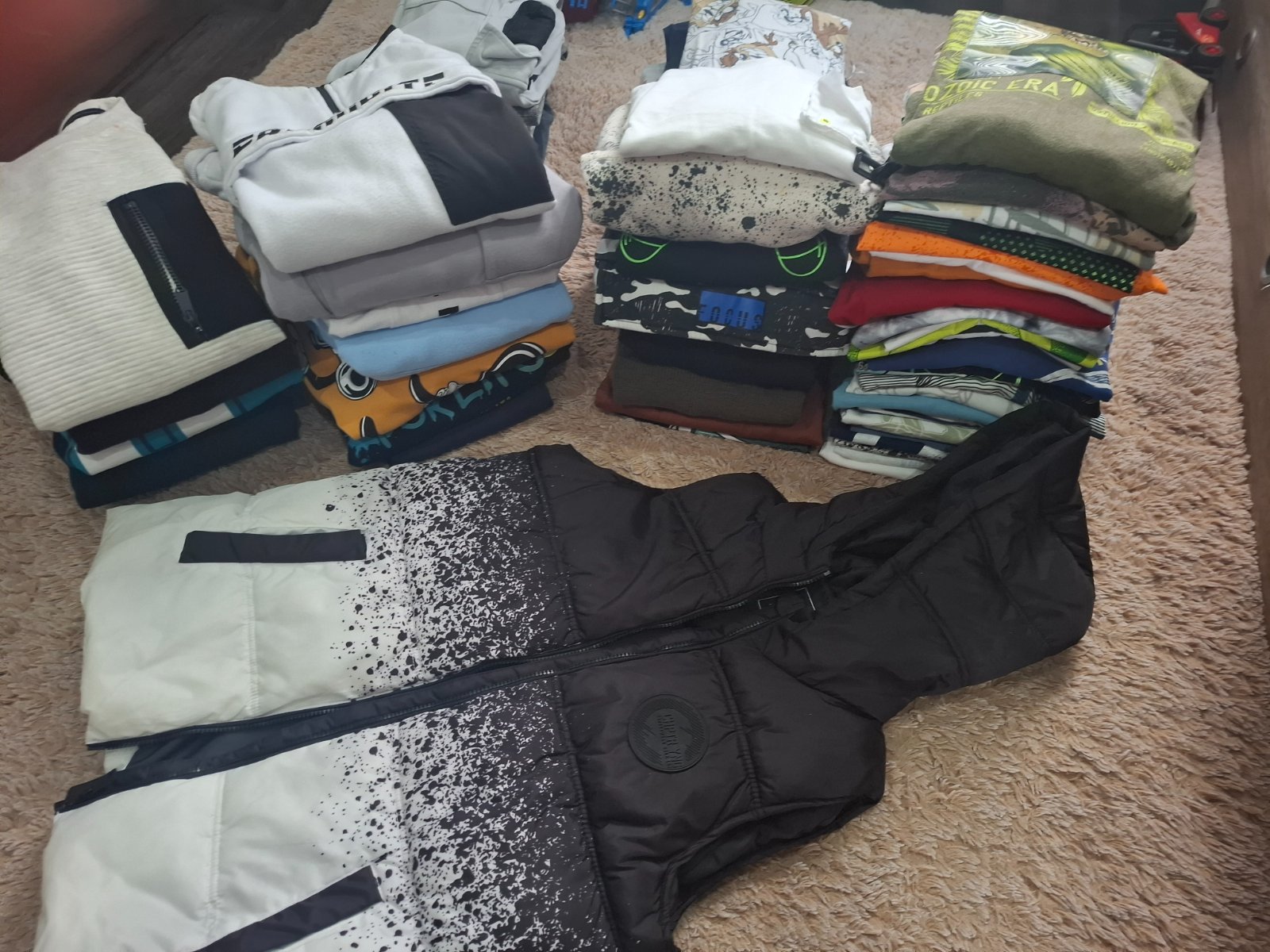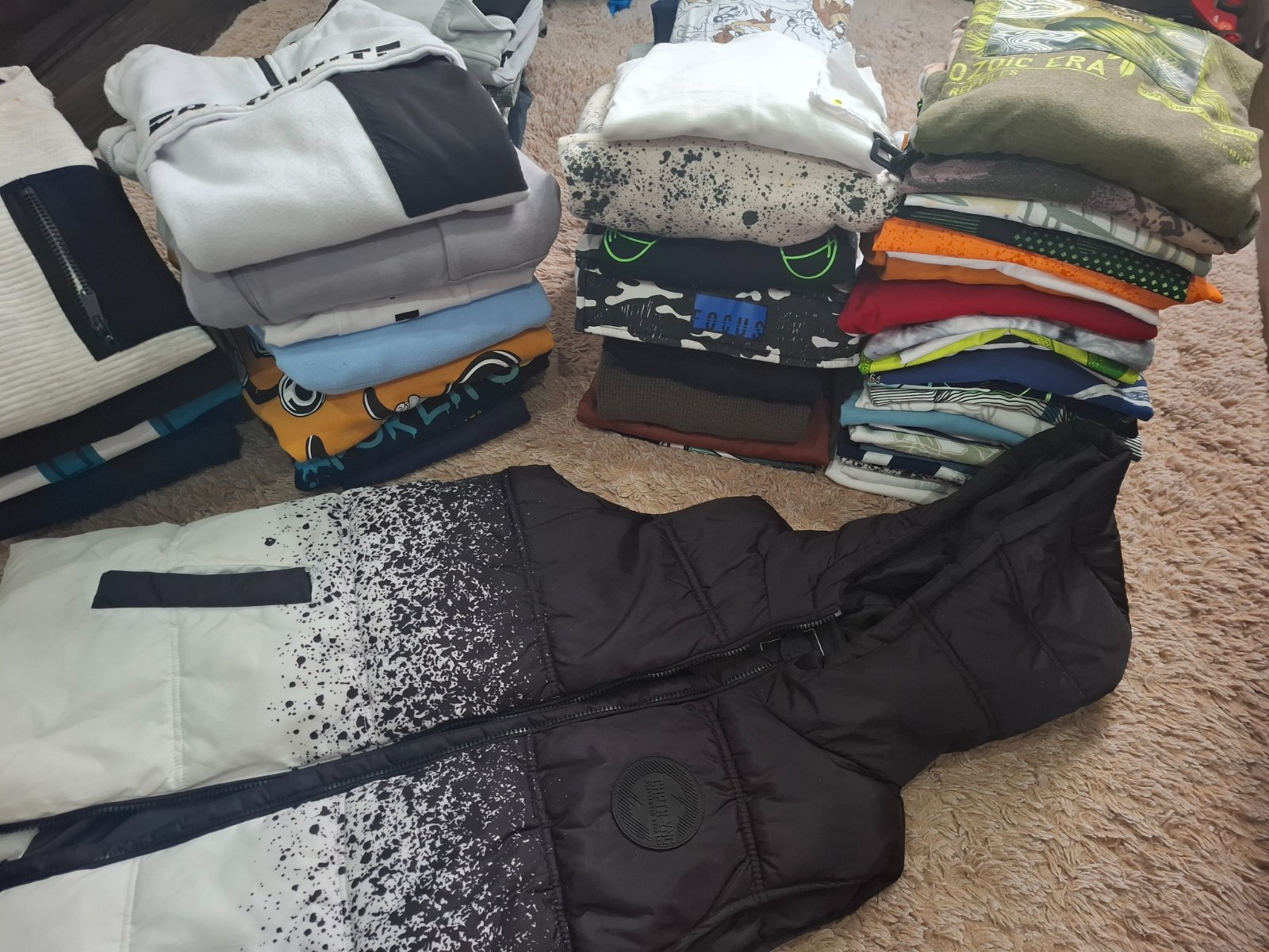 V balíku sa nachádza mikiny,tričká,tepláky,rifle,vesty na jeseň, tenisky, zimné topánky a všetko potrebné na jeseň,zima. Na fotke nieje ani polovica veci,ktoré sú na predaj