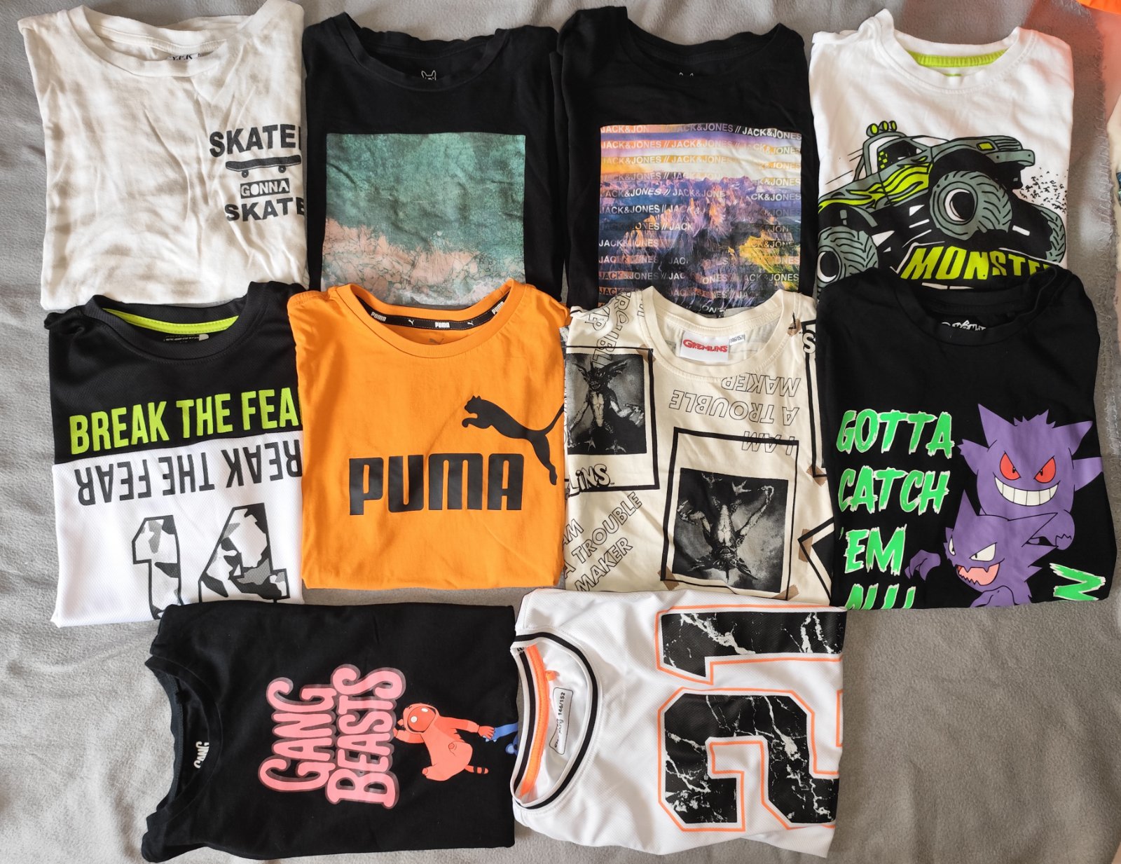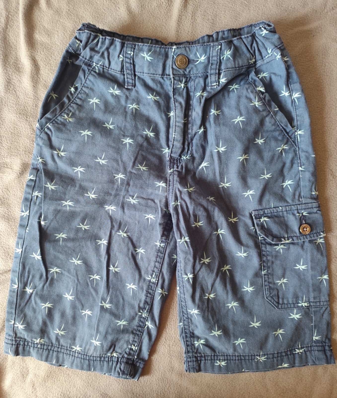 Balík obsahuje 9x tričko s kr.rukavom 1x tričko bez rukávov 2x teplákové kraťasy tmavomodré majú už bledsiu farbu od slnka 1x nohavice s palmami vo výbornom stave v páse gumička pre nastavenie veľkosti. Cena spolu 10€