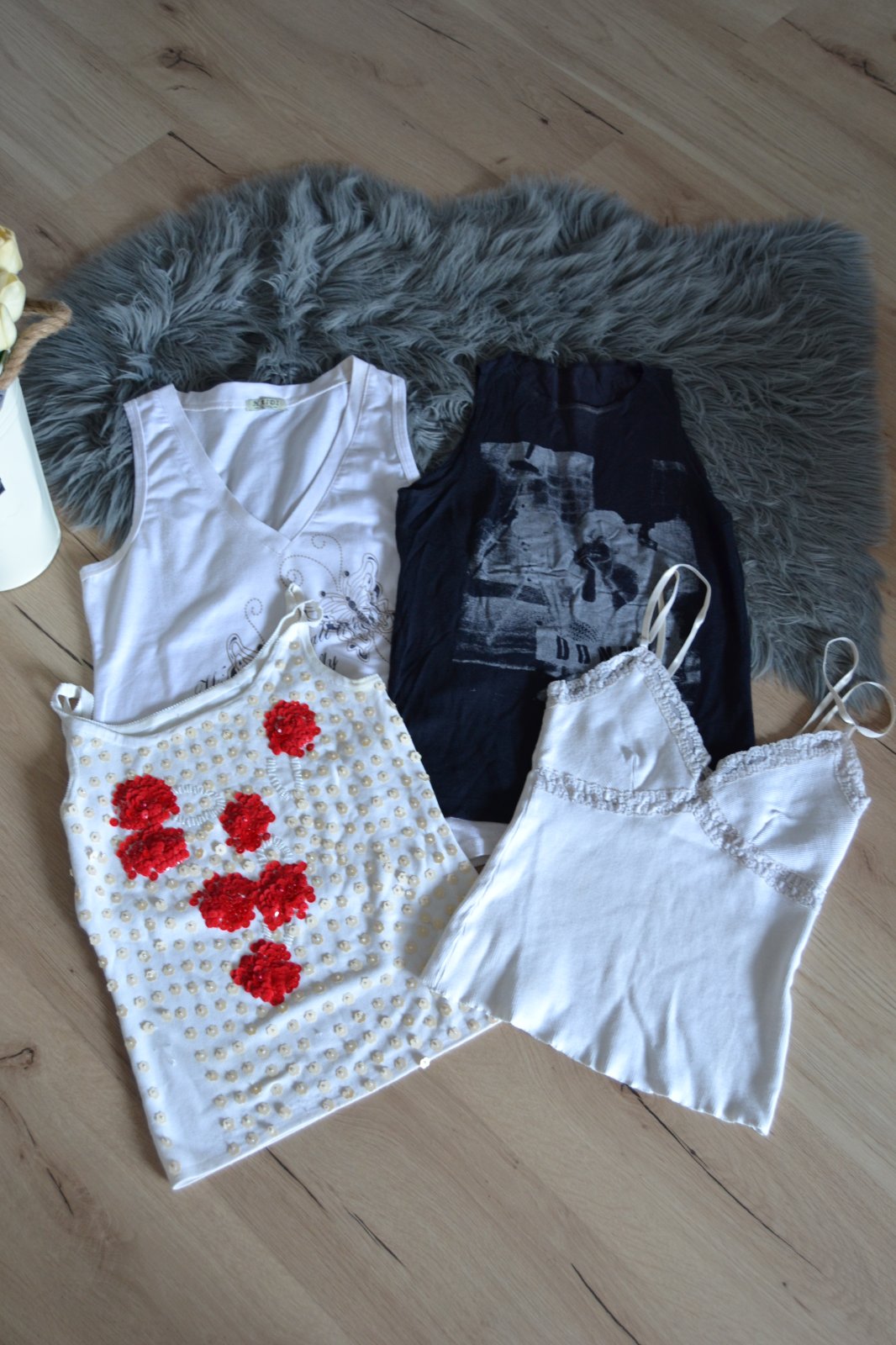 Balík dámskych tričiek a tielok 4 ks/5e, veľkosť S, farby biela a čierna. Málo nosené v top stave.