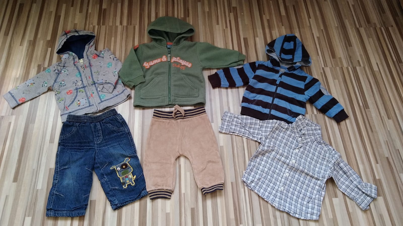 Veľký balík oblečenia pre chlapčeka. Obsahuje 4x tričiek, 1x svetrík, 2x overal na spanie, 3x dupačky, 2x polodupačky, 1x tepláčky, 5x body, 1x čiapočka, 6párov ponožiek, 1x papučky, 4x kabátik, 1x...
