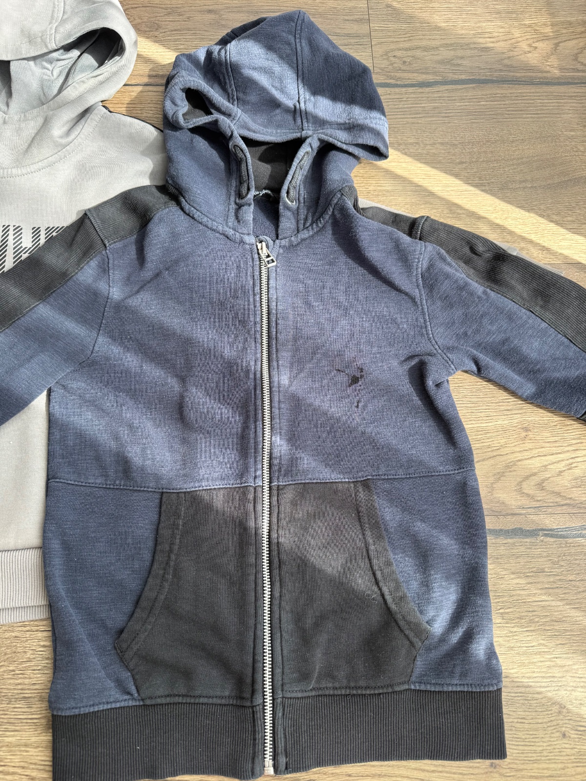 Mikiny bez poškodenia vhodné ale už skôr na dvor. Maju drobné zmolky a trosku zošuchany napis. Inak plne funkcne. Cena spolu.