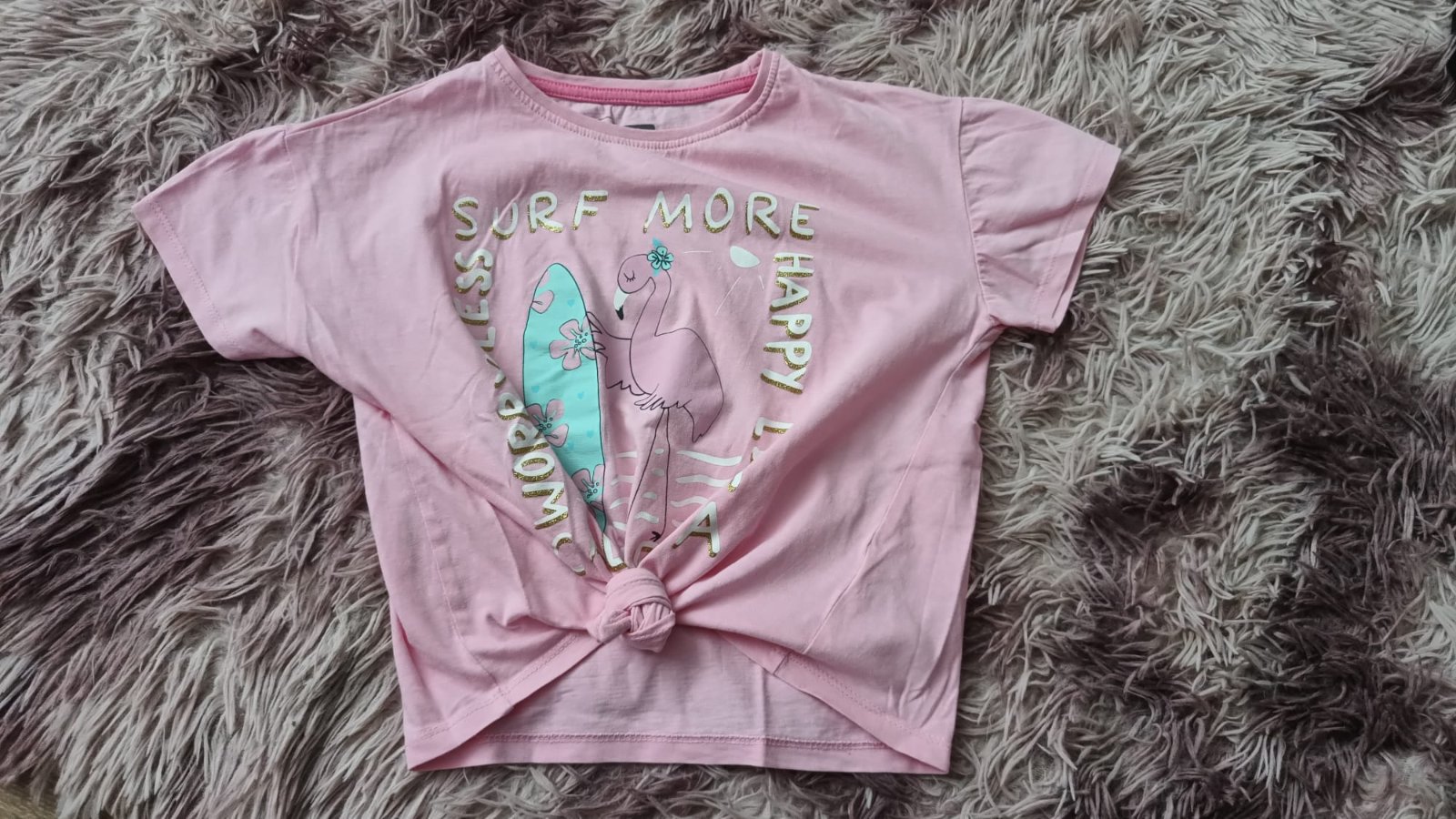 4x tričko s krátkym rukávom (Minnie značkové, kvetinový vzor, s flitrami, s pelikánom a uzlíkom)