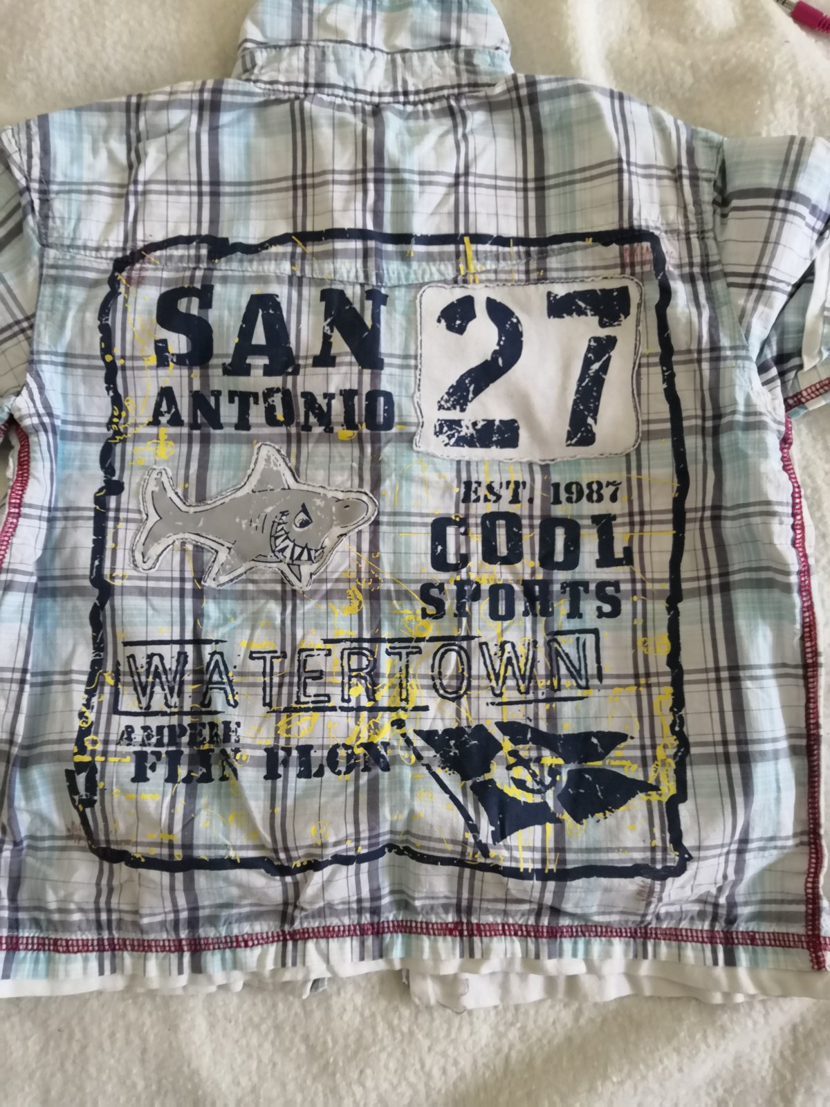 Mix oblečenia pre fešáka 5xtriciek 1/košeľa 1 tepláky veľ 122,tričko čierne veľ 122 akurát na teplákoch je mini dierka medzi nohami nič strašné .(foto )