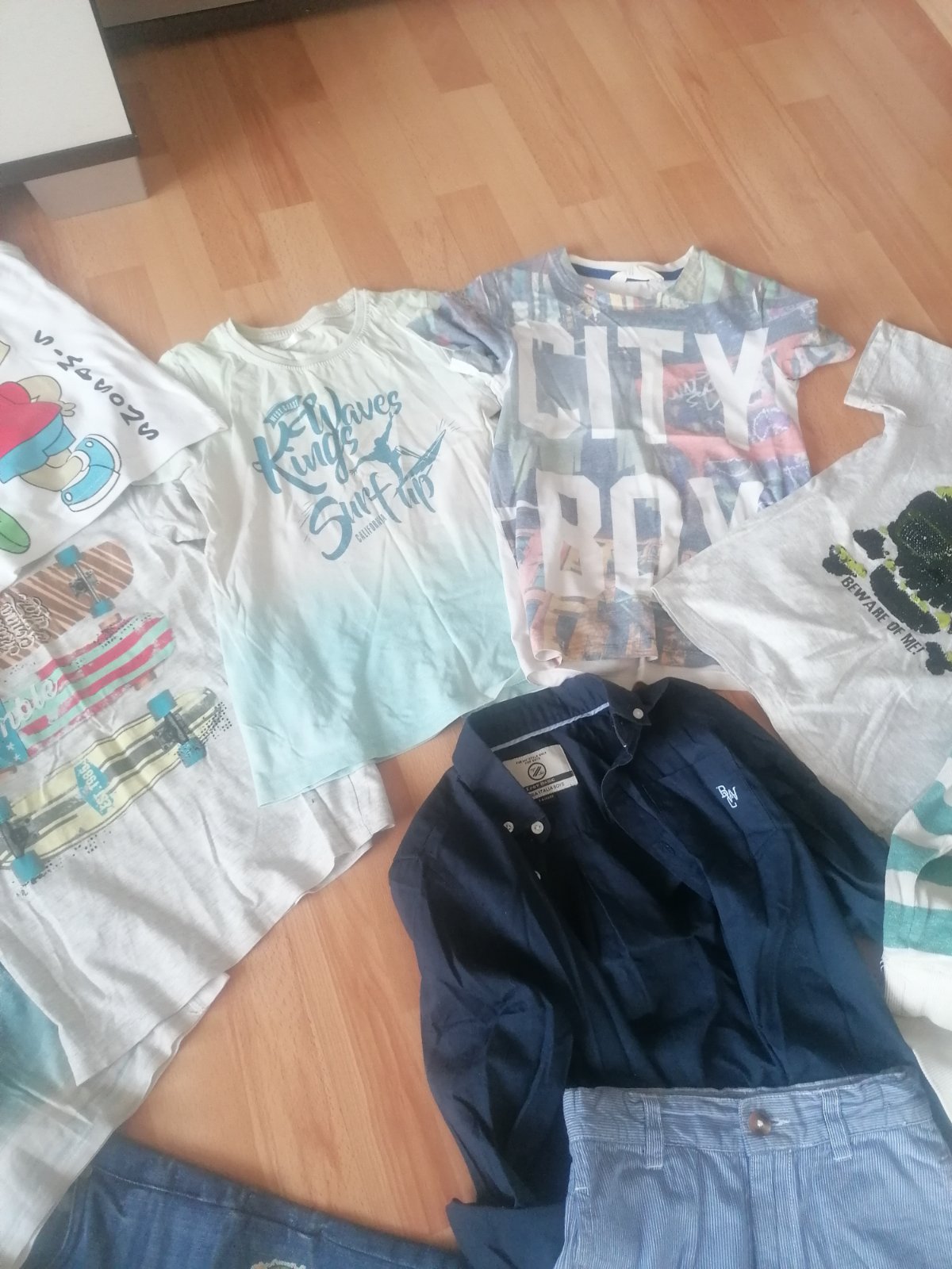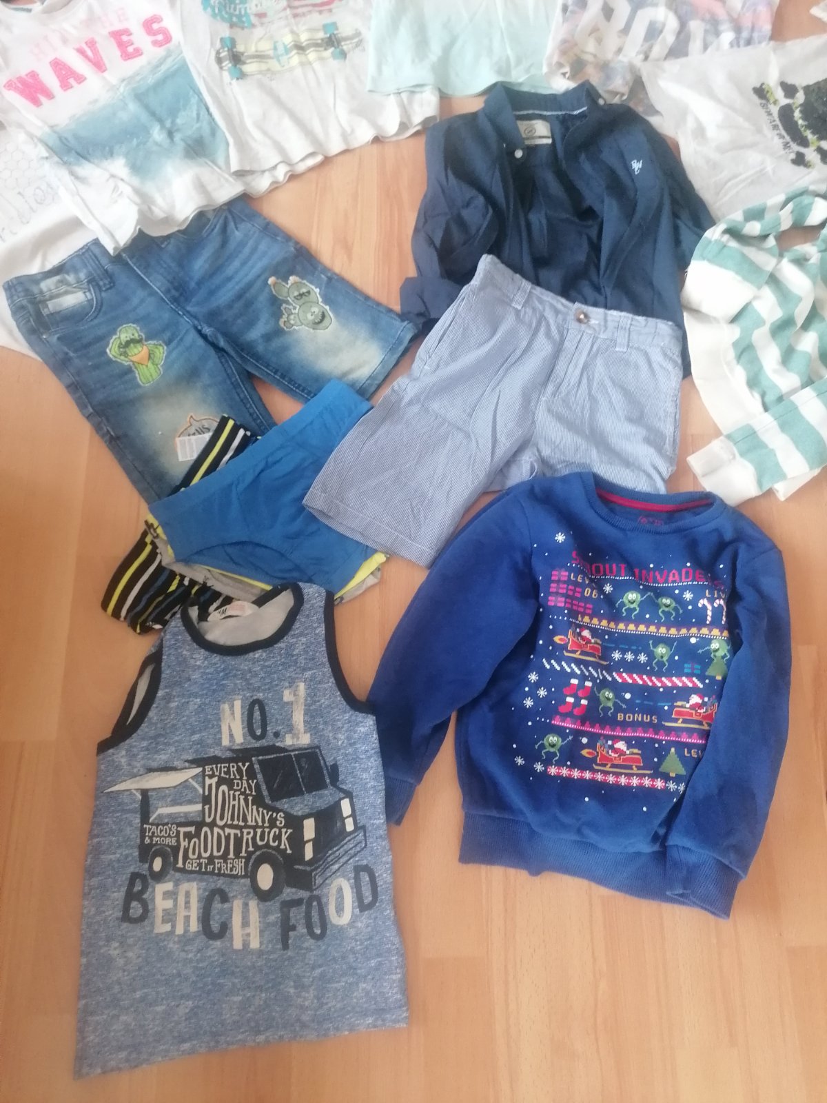 nosene, veľ 122 122/128, veci boli viac nosené, nájde sa fľak, na doma okolo domu ešte poslúžia,slipy 4pack nové veľ 134/140, kom