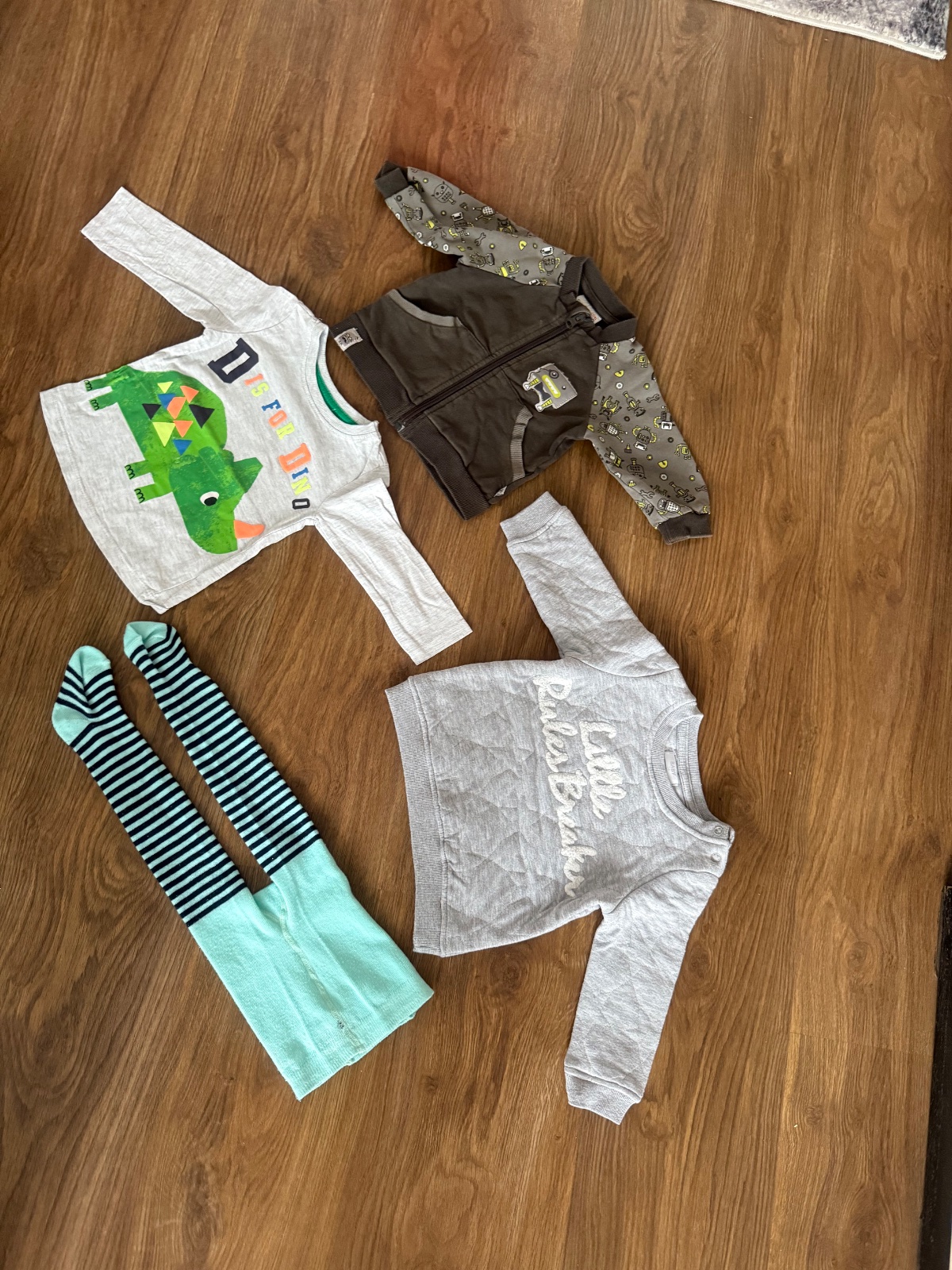 Všetko veľmi pekný stav, značka F&F,v. 6 - 9mesiacov. Obsahuje overaly, klobúčiky a jednu súpravu body s rifľovými kraťaskami.