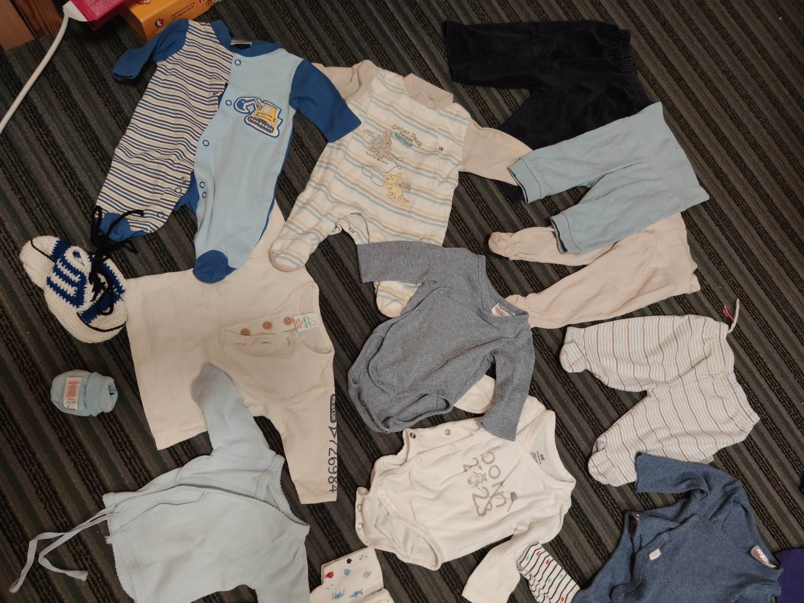 plná taška,všetky veci v top stave - vyše 25 ks oblečenia- pyžamká, tričká s dlhým rukávom, body,mikina,čiapočky,rukavičky proti škriabaniu,...Možnosťvyzdvihnúť osobne v BA-Dúbravka alebo poštou pri úhrade poštovného.