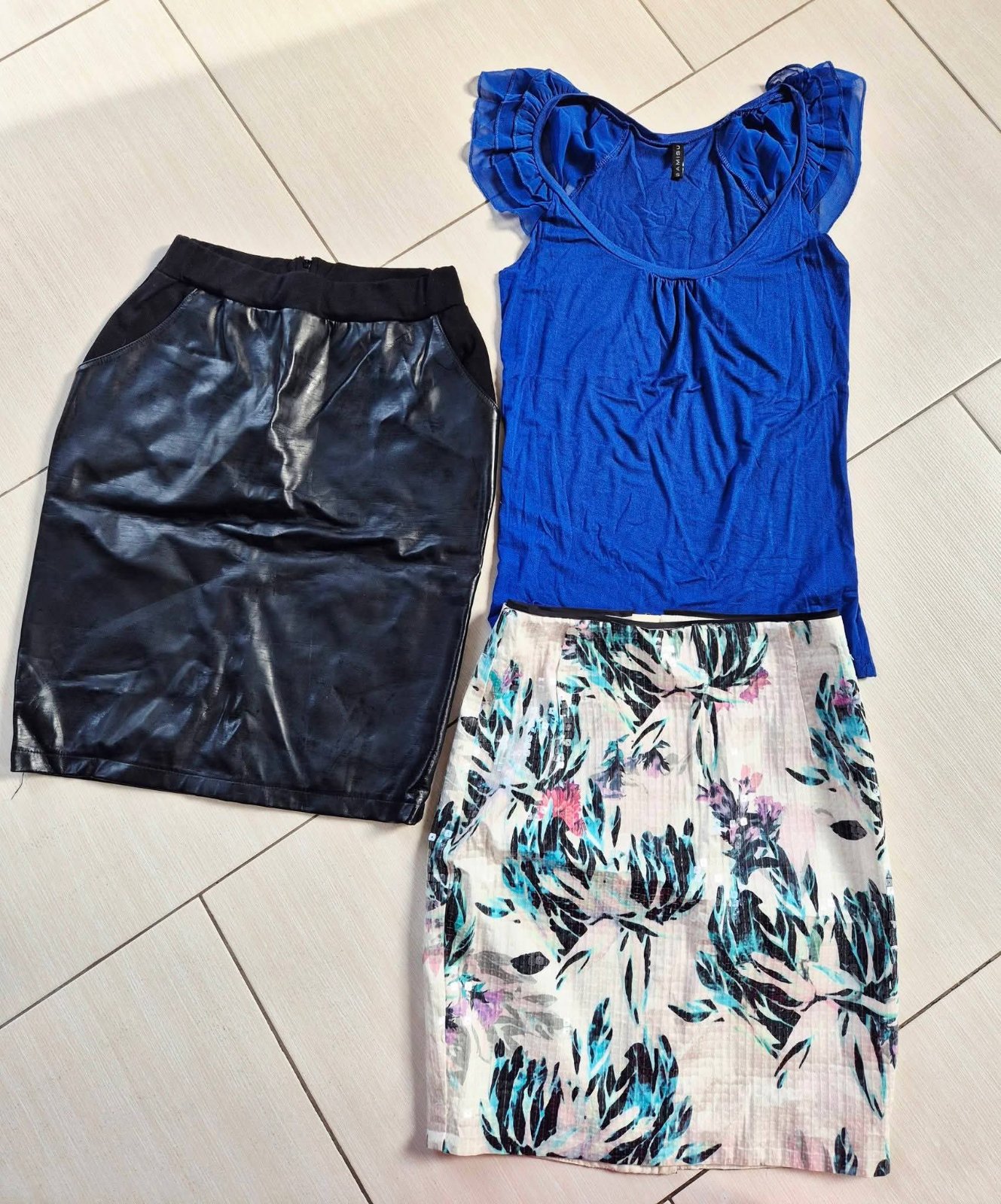Predam sukňu, veľkosť 36, modrý top veľkosť S. K tomu pridávam čiernu sukňu zadarmo