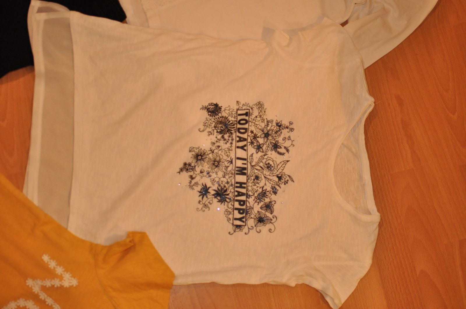 Pekný a praktický balik pre dievča. Pevnejšie leginy- kaliopky čierne TCM tchibo velk 158/164 regul. pás, nosene,ok. Biele tričko s dlhým rukávom Zara 164 13-14 rokov, stav super dolu jeden kvietok roztrhnuty biele tričko krátky rukav 158/164 krásne, dolu tylová spodnička, obrázok s kamienkami, CA. žlte CA 158/164. veci pekné odporúčam. cena 7 eur plus postovne