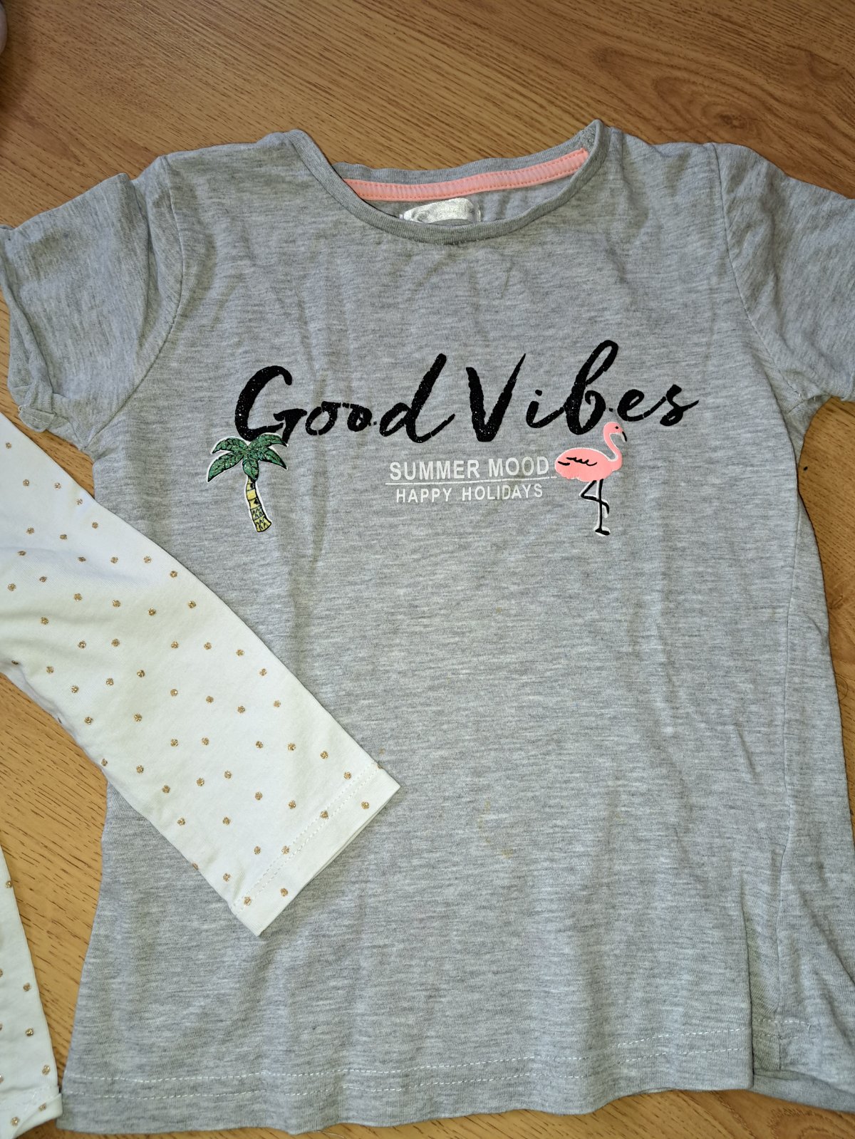 Krátke sivé s nápisom good vibes 122/128