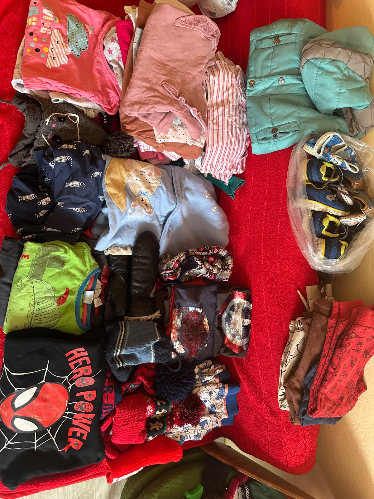 Predám balík oblečenia v. 86 - 12-18 mesiacov vhodný na zimu. Vecičky sú nosené po 2 deťoch - nemajú fľaky ani dierky, znaky nosenia sú: vyblednuté farby z prania, mini žmolky a popraskaná potlač -...