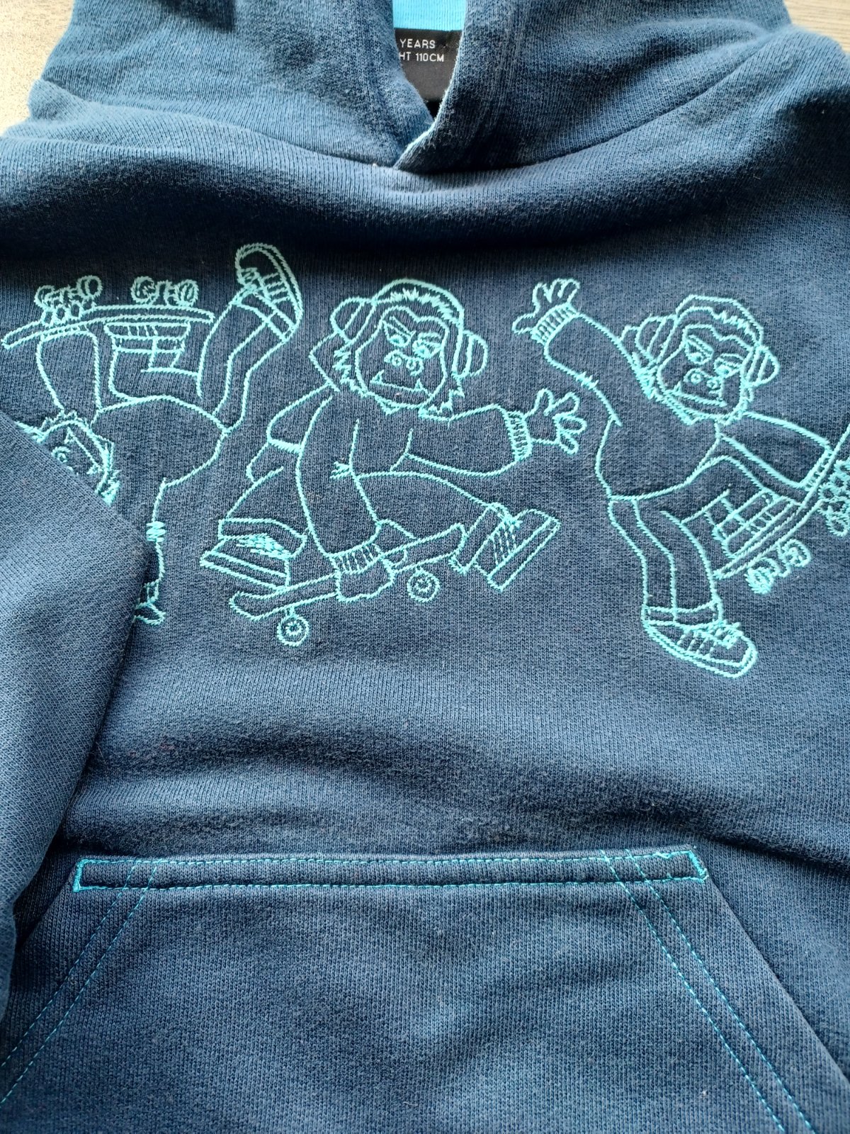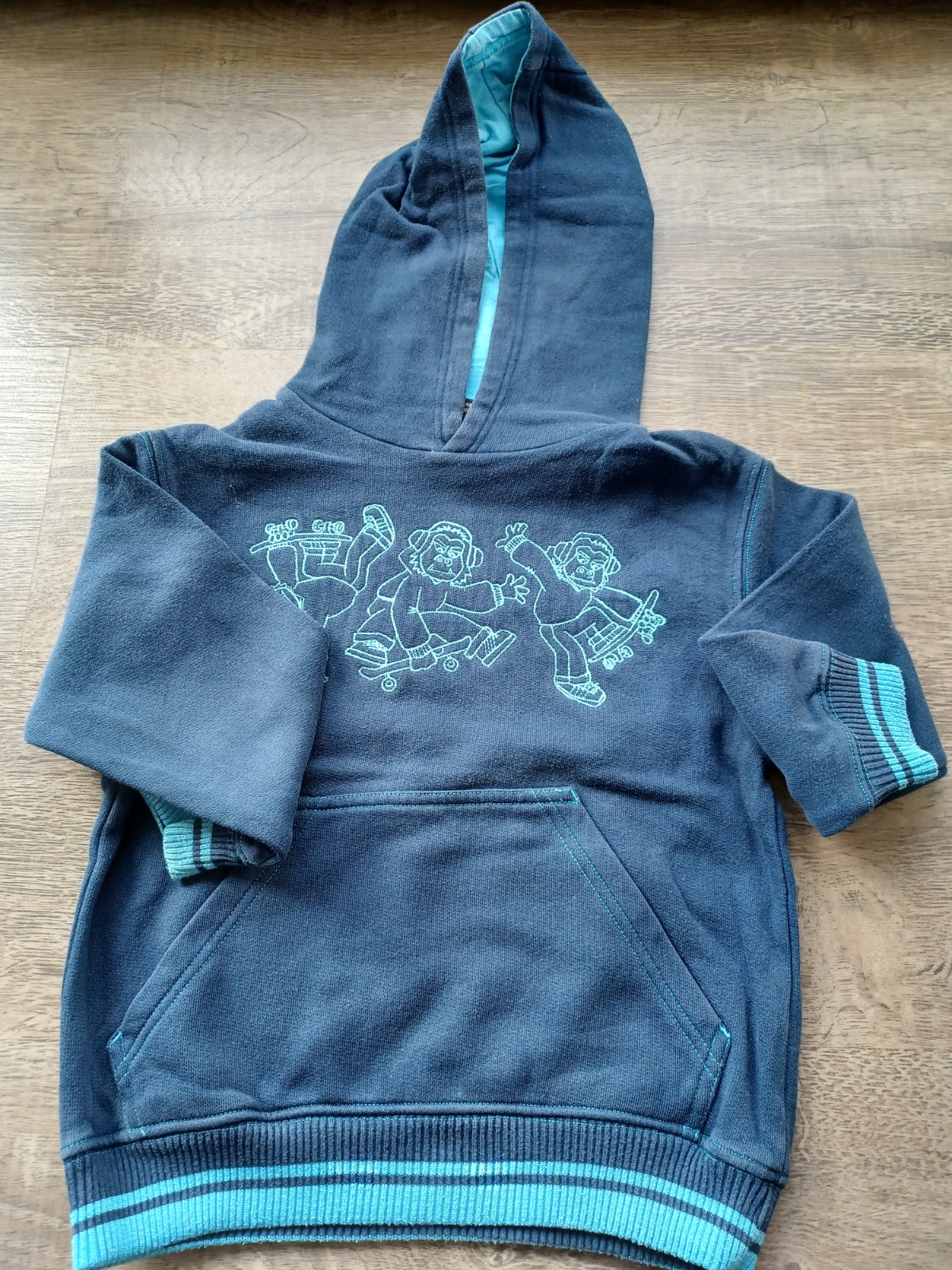 Krásne nove mikinky bez poškodení. Veľkosť 110. Syn ich mal iba 1x oblečene, prednosť daval mikinam so zipsom.