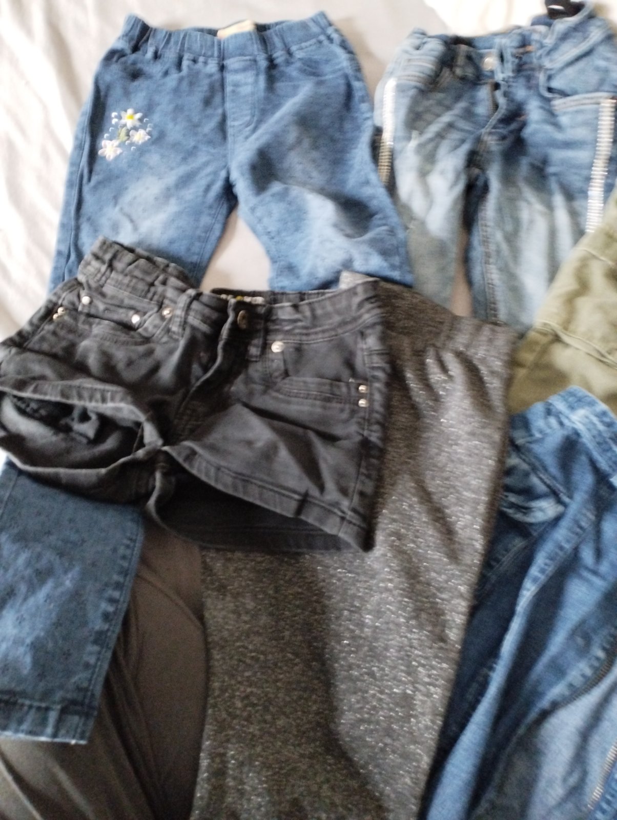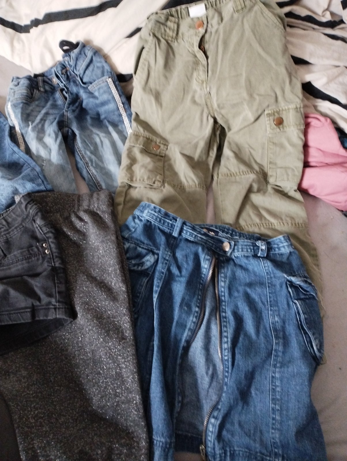 Predám dzeginy rifle kapsace tenké kraťasy 2* jedna sukňa monsoon len spolu veľkosť 134