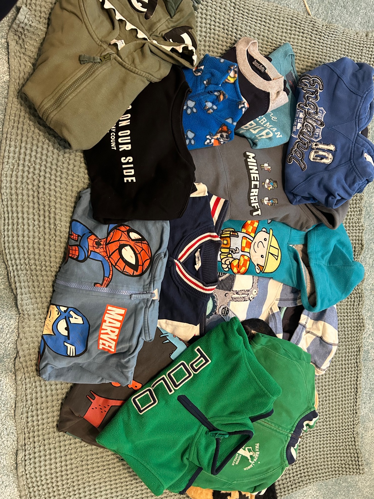 Predám mega balík oblečenia pre chlapca, veľkosť 110 - 116 na jeseň, zimu, jar. Mikiny, trička, nohavice, rifle, menčestráky, tepláky, pyžamá, tielka, pančuchy, boxerky, slipy, oteplovaky, nohavice do dažďa, bunda.. skrátka celú skriňu :) ZnačkyNext, Lindex, H&M, F&F a ďalšie. Okrem tých na fotkách ešte pridám zopár ako bonus. Za rozumnú cenu 50 eur za všetko.