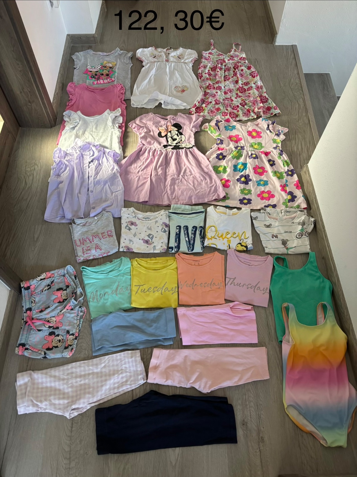 Ponúkam na predaj balik oblečenia pre dievcatko velkost 122, balik obsahuje: pyzamo s dlhým rukávom, mikina s kapucňou, tricko dlhy a tricko kratky rukav, 2x saty bez rukáva, 1x trblietave saty, sv...