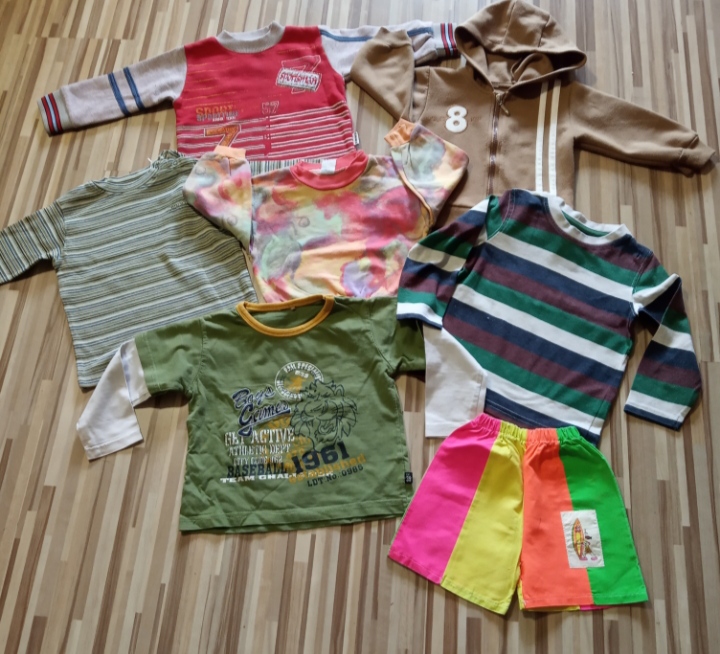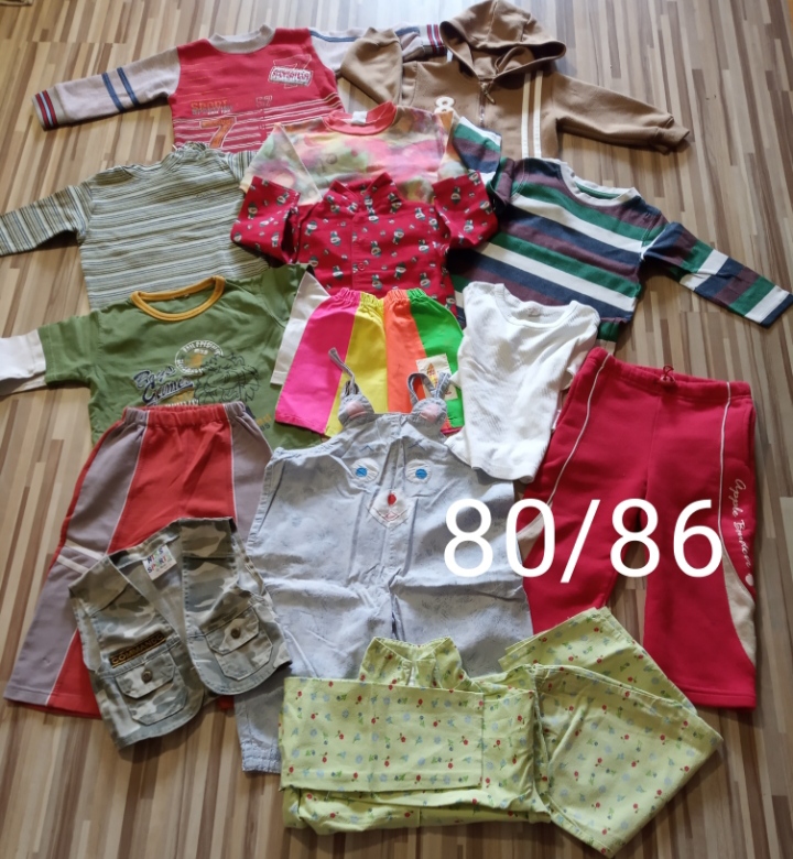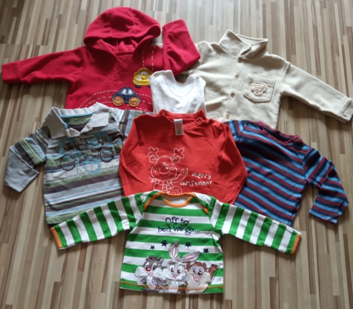 Ponúkam oblečenie pre chlapčeka od 9/18 m ,balíček obsahuje tričká dlhý rukáv mikiny tepláky tričká dlhý rukáv kraťasy rifle pyžamko dokopy 14 kusov sú zachované, môžte si vybrať sú tam dva balíky