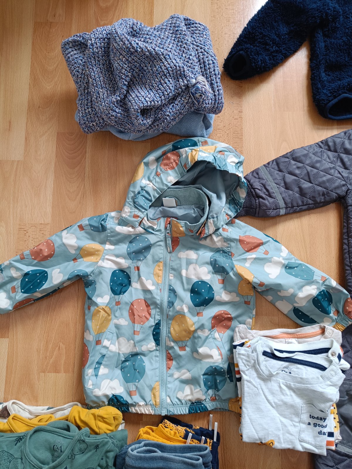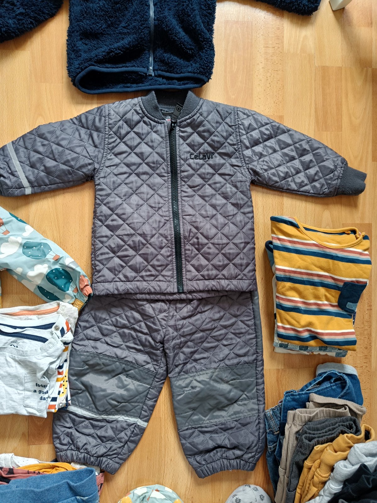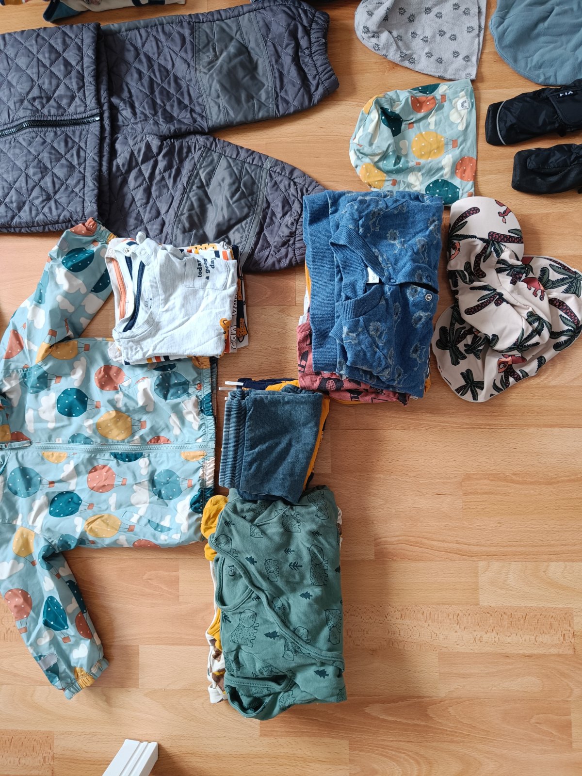 Predám balík oblečenia pre chlapca, veľkosť 12-18 mesiacov. Všetko je ako nové. V balíku svetre, bunda do dažďa, termo súprava, nohavice, kraťasy, dlhé dupačky, dlhý a krátky rukáv, prechodné čiapky a zimné rukavice.